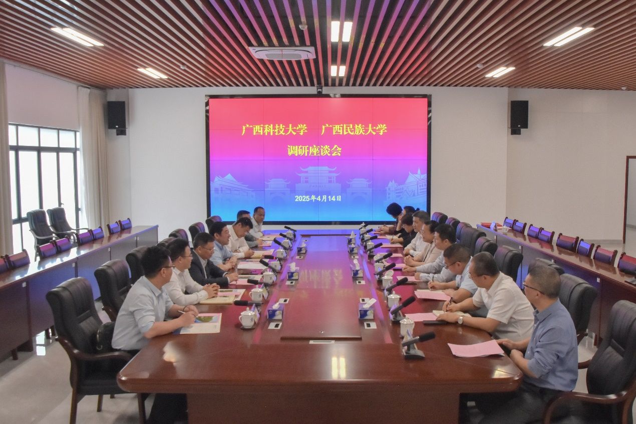 【大学生通讯社报道】4月14日下午,广西科技大学校长刘宝臣带队到beat365亚洲体育官方网站调研交流,beat365亚洲体育官方网站校长韦仕珍会见刘宝臣一行。双方在广西中华民族共同体意识研究院会议室举行座谈会并签订合作协议。beat365亚洲体育官方网站党委副书记邓国彬,副校长吕俊彪出席座谈会。