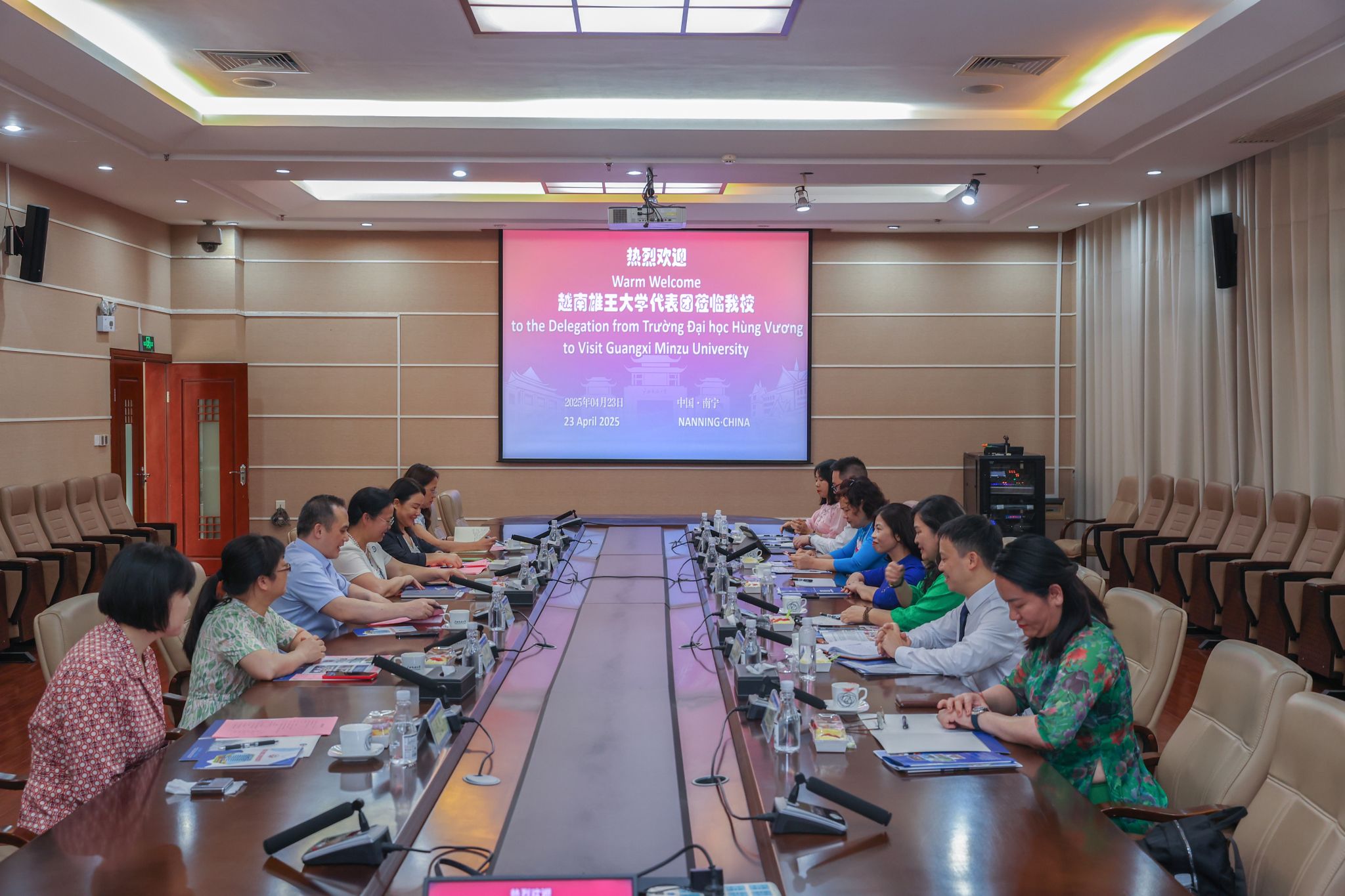韦仕珍对潘氏情一行的到来表示欢迎,简要介绍了学校在东盟语种建设及国际教育合作方面的成果。她表示,学校携手印度尼西亚、泰国、老挝三国高校合办孔子学院,深化了语言文化交流,积累了丰富的合作办学经验。希望两校加强文化交流,深化协同育才,拓展教育合作成果,服务中越产业链,培养区域发展所需的“语言+专业”复合型人才。
