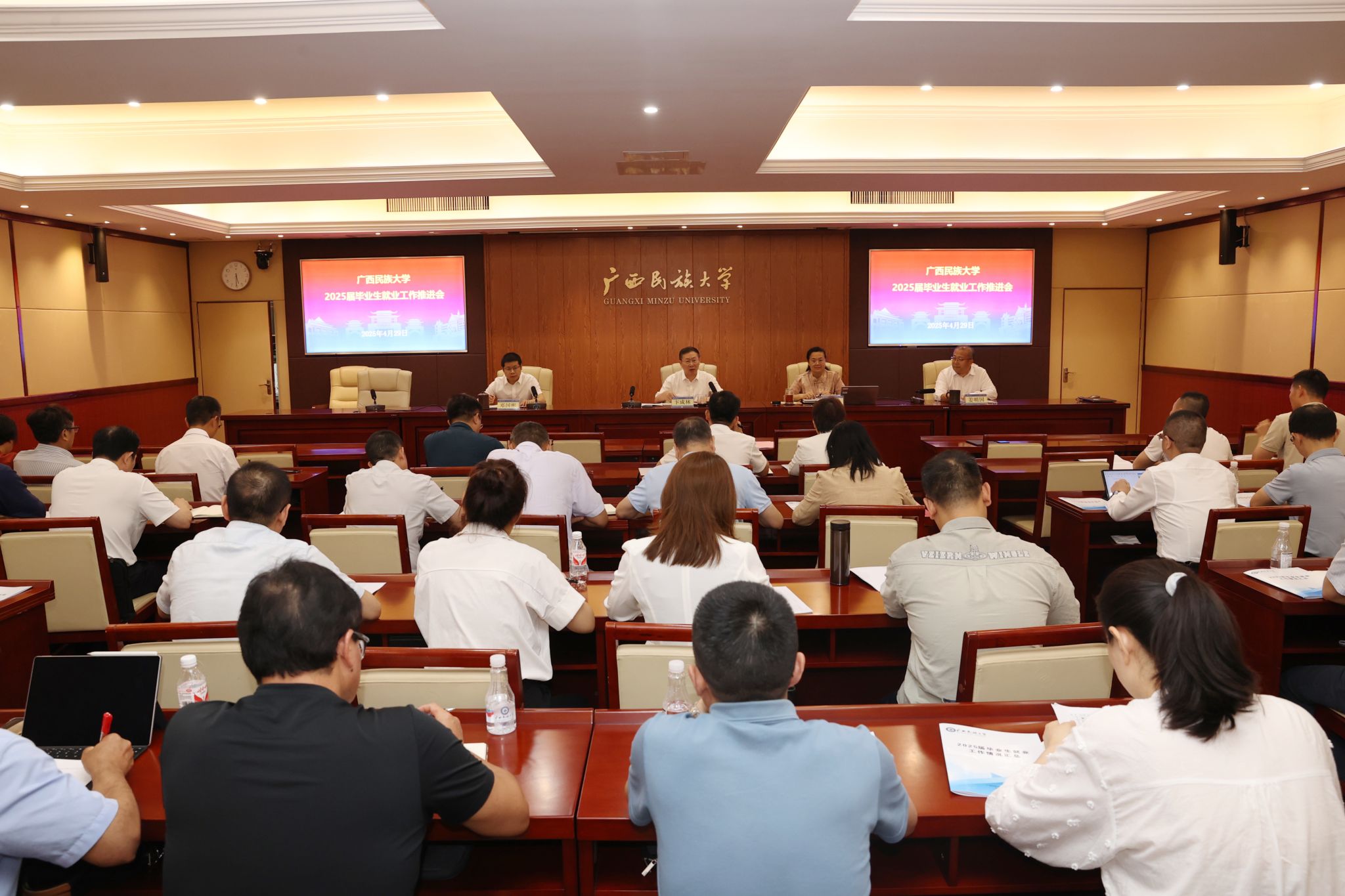 韦仕珍通报2025届毕业生就业工作进展情况并就下一阶段毕业生就业工作作出部署。她强调,要加强校企协同,强化精准帮扶,推动“访企拓岗双百计划”进一步落地。校领导要牵头带队走访头部企业深入调研,精准匹配行业需求,拓展优质岗位资源,落实党中央关于高校毕业生“高质量充分就业”的决策部署。