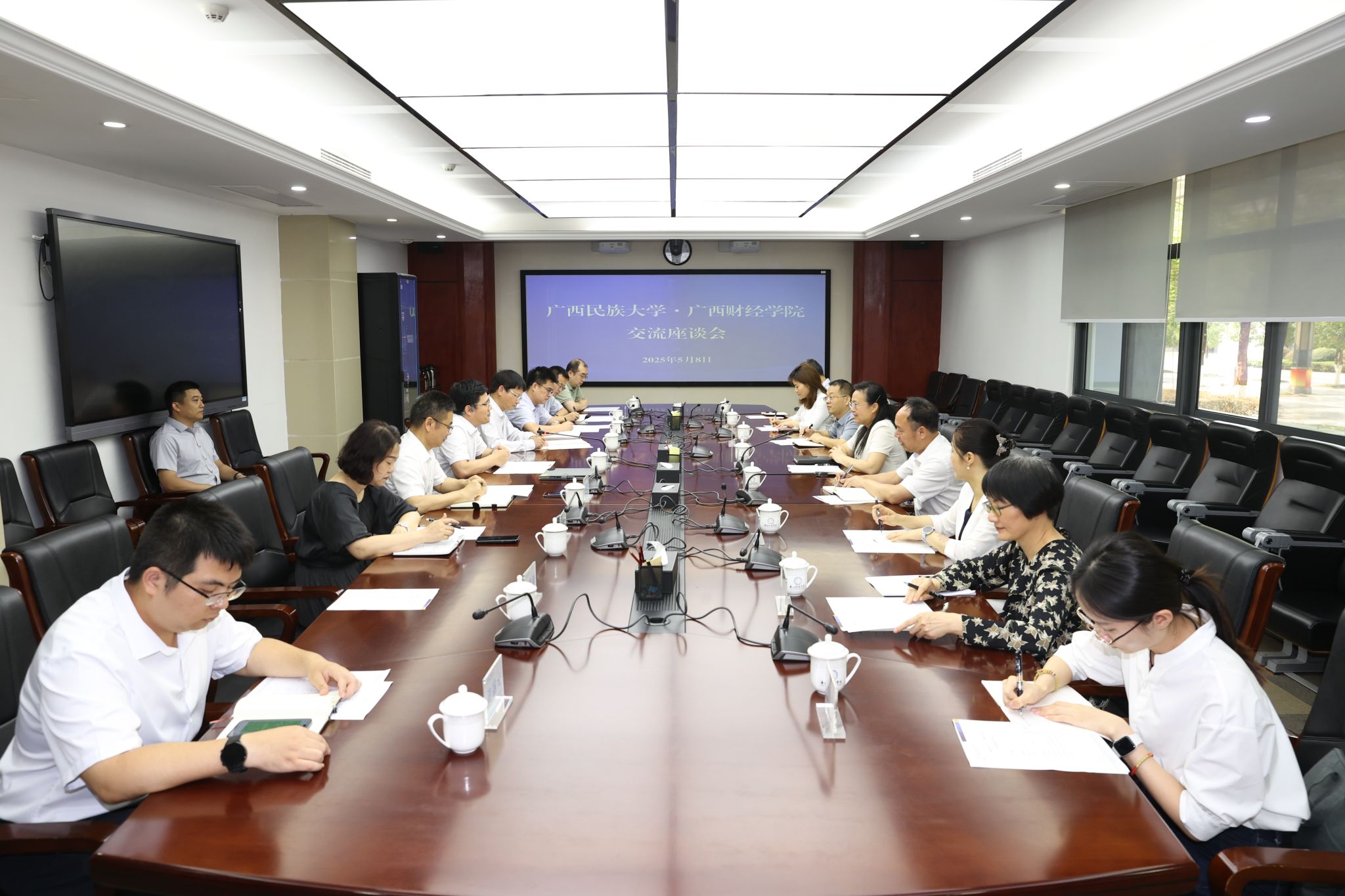 5月8日上午,校长韦仕珍带队到广西财经学院调研交流。会前,广西财经学院党委书记欧阳进会见韦仕珍一行,广西财经学院校长范祚军,副校长陆善勇、唐红祥,beat365亚洲体育官方网站副校长何立荣等参加座谈会。