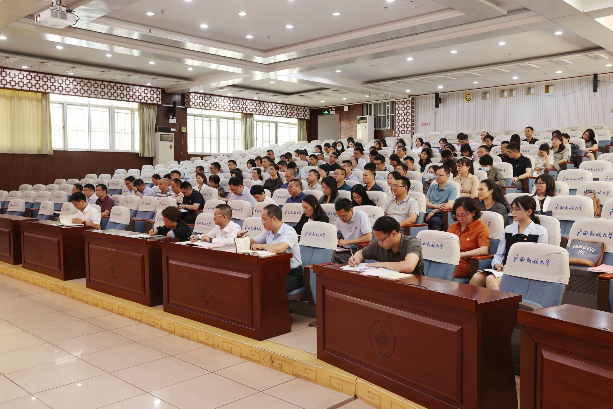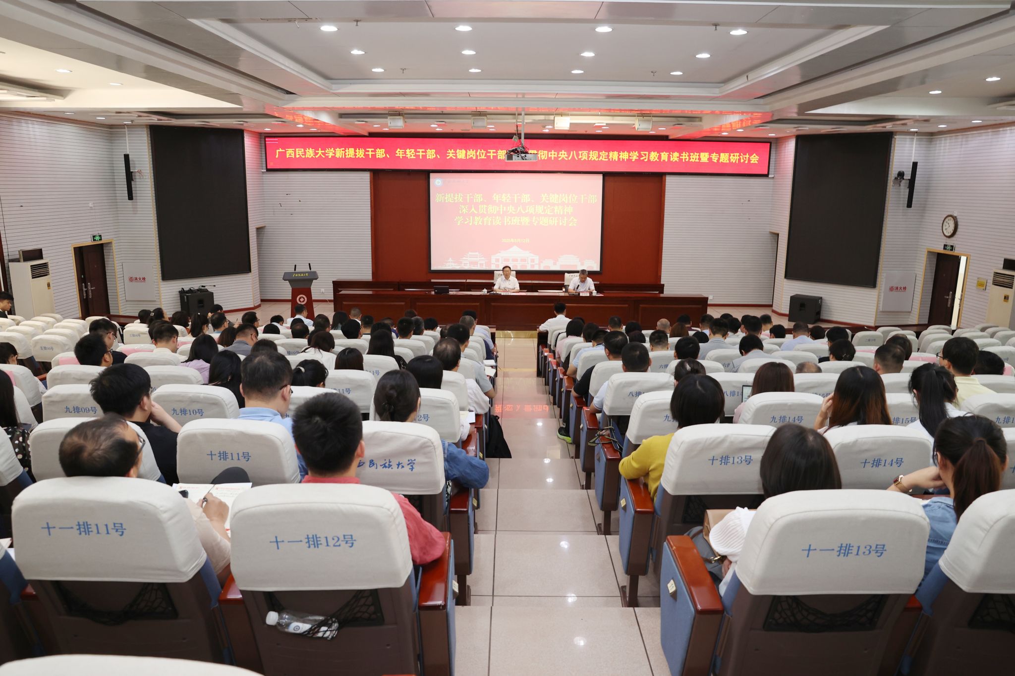 【大学生通讯社报道】5月12日上午,beat365亚洲体育官方网站在科技楼报告厅举行新提拔干部、年轻干部、关键岗位干部深入贯彻中央八项规定精神学习教育读书班暨专题研讨会。校党委书记卞成林出席会议并讲话,党委副书记陈铭彬主持会议,beat365新提拔干部、年轻干部、关键岗位干部共134人参加会议。