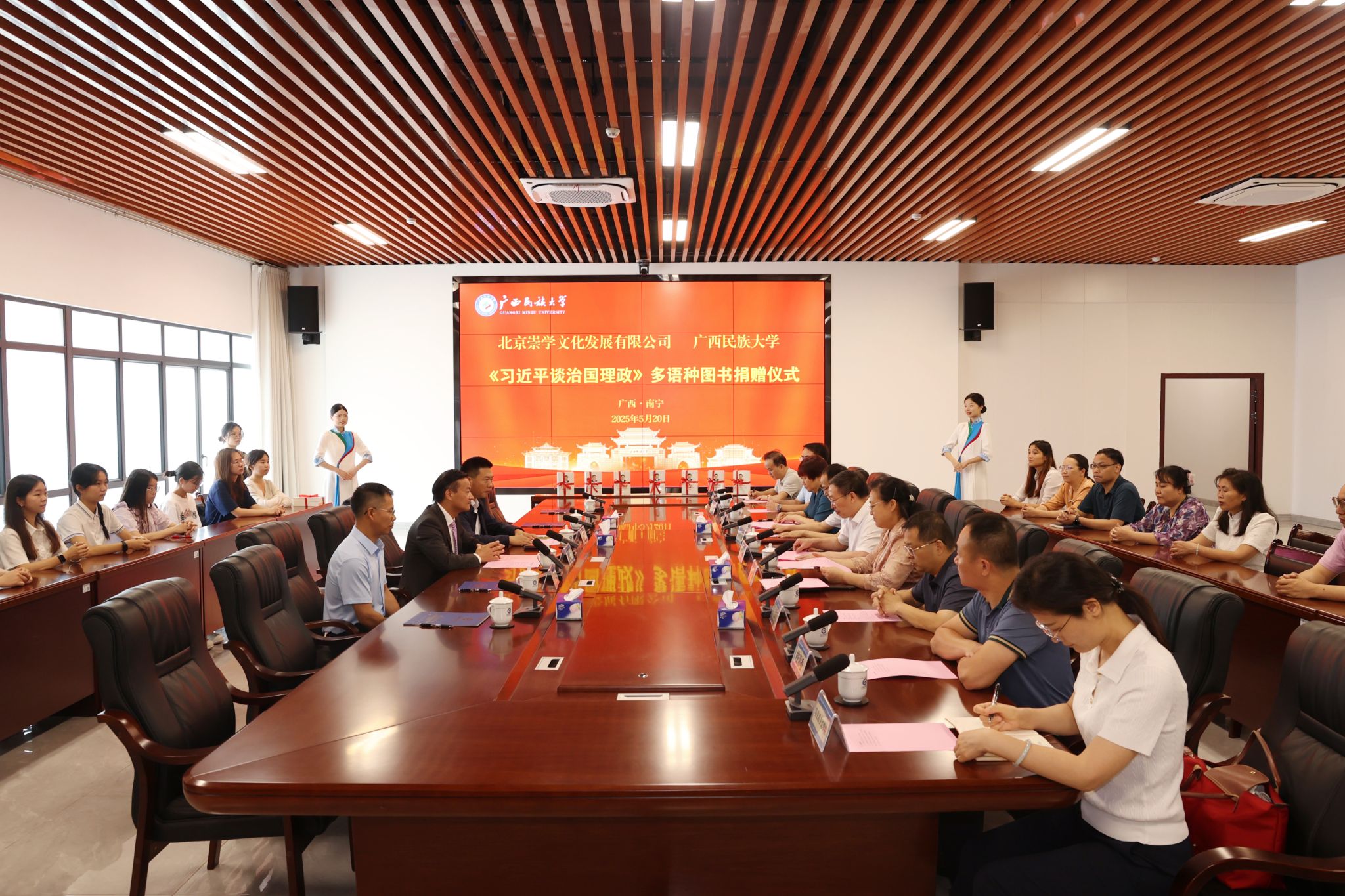 捐赠仪式后,北京崇学文化发展有限公司一行先后参观广西中华民族共同体意识研究院、铸牢中华民族共同体意识体验馆和校史馆等。(初审:覃熙 复审:潘之铭 终审:孙寿媚)