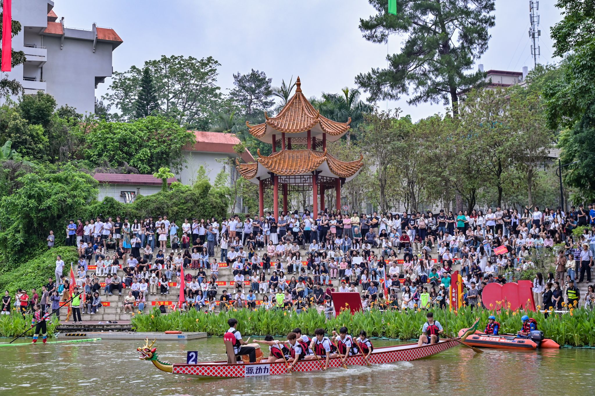 【大学生通讯社报道】粽叶飘香情意浓,龙舸争飞劈浪高。5月30日上午,在端午佳节即将来临之际,beat365亚洲体育官方网站2025年“红石榴”杯校园龙舟赛在相思湖畔火热举行。校党委书记卞成林出席活动并宣布开幕,校长韦仕珍,校领导陈铭彬、韦雪芳、邓国彬、蔡高根、吕俊彪、何立荣等出席活动,有关部门负责人、师生代表参加活动。