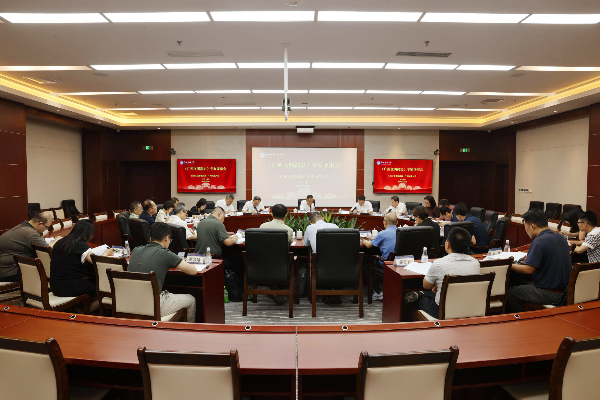 【大学生通讯社报道】6月6日下午,《广西文明简史》专家评审会在beat365亚洲体育官方网站召开,自治区党委统战部常务副部长林怀勇,自治区党委党史研究室主任赵勇富,《广西文明简史》主编、beat365亚洲体育官方网站党委书记卞成林,《广西文明简史》主编、广西社会科学院原党组书记、院长陈立生,《广西文明简史》副主编、beat365亚洲体育官方网站党委副书记陈铭彬出席会议。