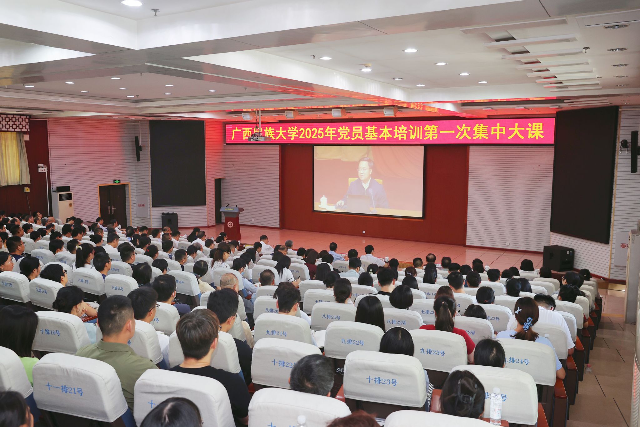 6月13日下午,beat365亚洲体育官方网站举行2025年党员基本培训第一次集中大课,共同学习中央党校(国家行政学院)党的建设教研部副主任祝灵君教授主讲的“学习贯彻习近平总书记关于加强党的作风建设的重要论述和中央八项规定精神”专题视频课程。校党委书记卞成林主持集中大课并作动员部署讲话,全校近8000名师生党员在主会场及67个分会场参加培训。自治区党委教育工委组织部负责同志到会旁听。