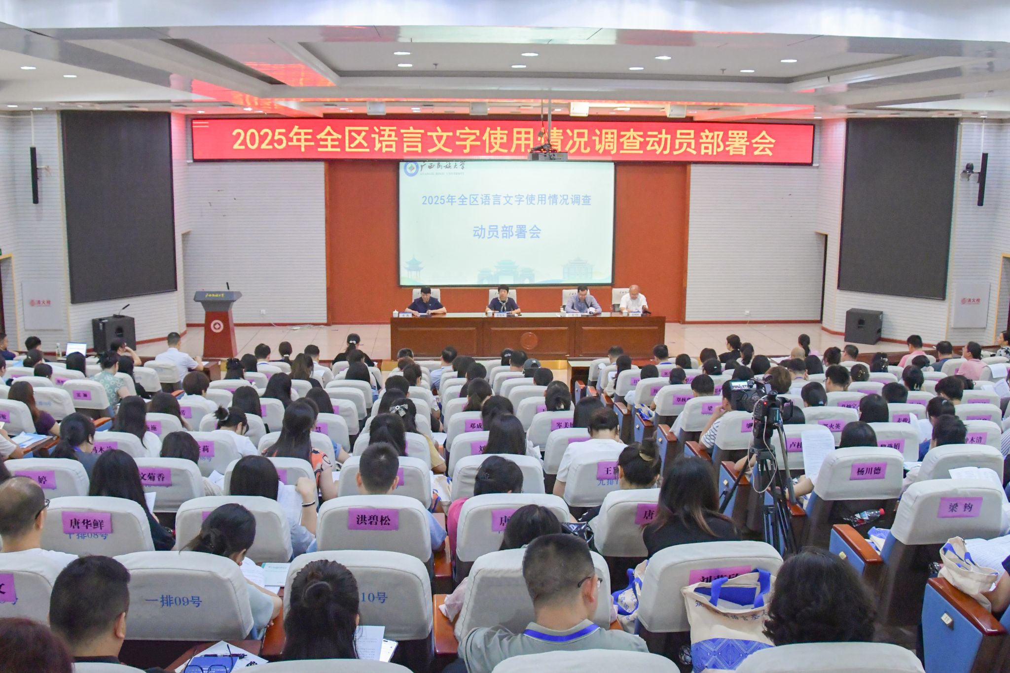 6月11日,2025年全区语言文字使用情况调查动员部署会在beat365举行,自治区教育厅副厅长张旭凤,副校长姜明国,全国调查办专家、教育部语用所政研中心主任袁伟出席会议并致辞。(初审/黄秋艳 复审/荣子卿 终审/孙寿媚)