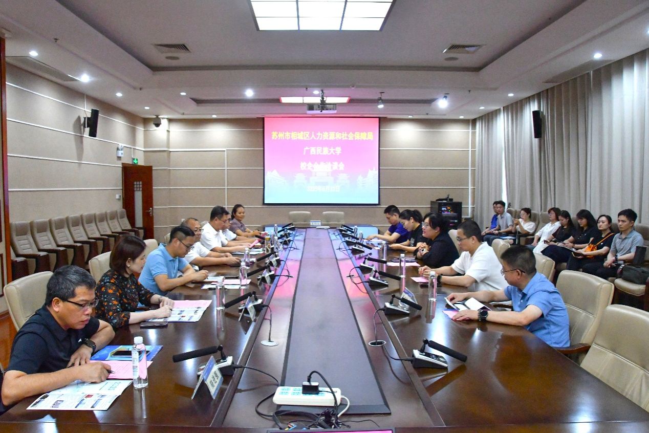 6月12日,姜明国会见苏州市相城区人力资源和社会保障局副局长崔莹一行,双方就共建产业学院,构建教学、实习、就业一体化育人平台,促进产教深度融合,助力学生全面发展与企业持续壮大进行交流。(初审/肖耀科 复审/荣子卿 终审/孙寿媚)