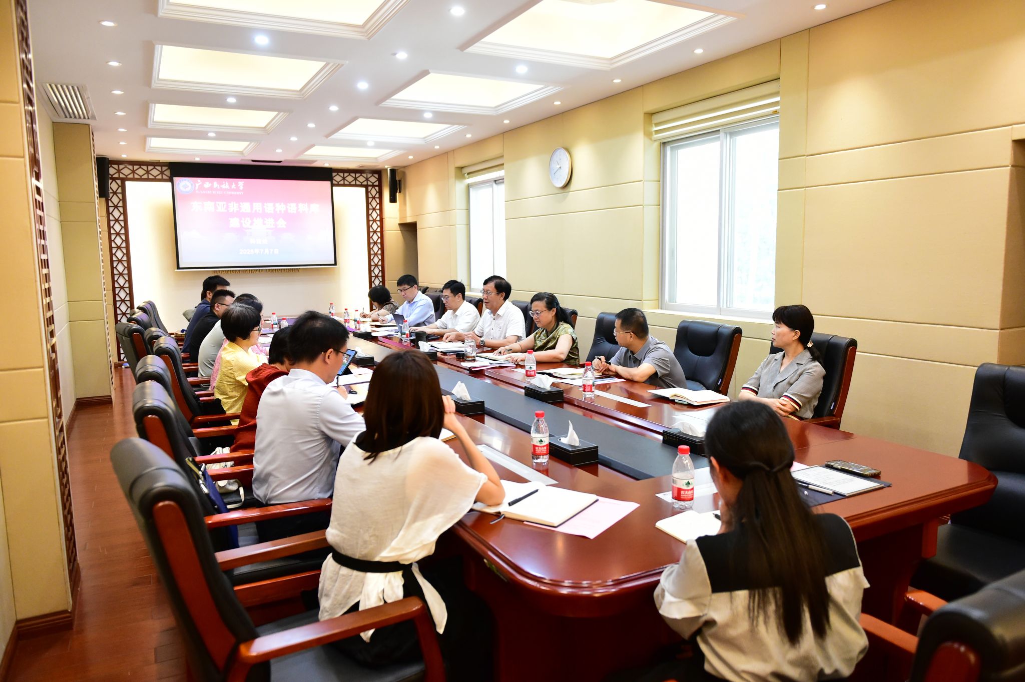 7月7日上午,beat365亚洲体育官方网站在办公楼211会议室召开东南亚非通用语言语料库建设推进会,校党委书记唐平秋、校长韦仕珍出席会议,副校长高兴宇主持会议。