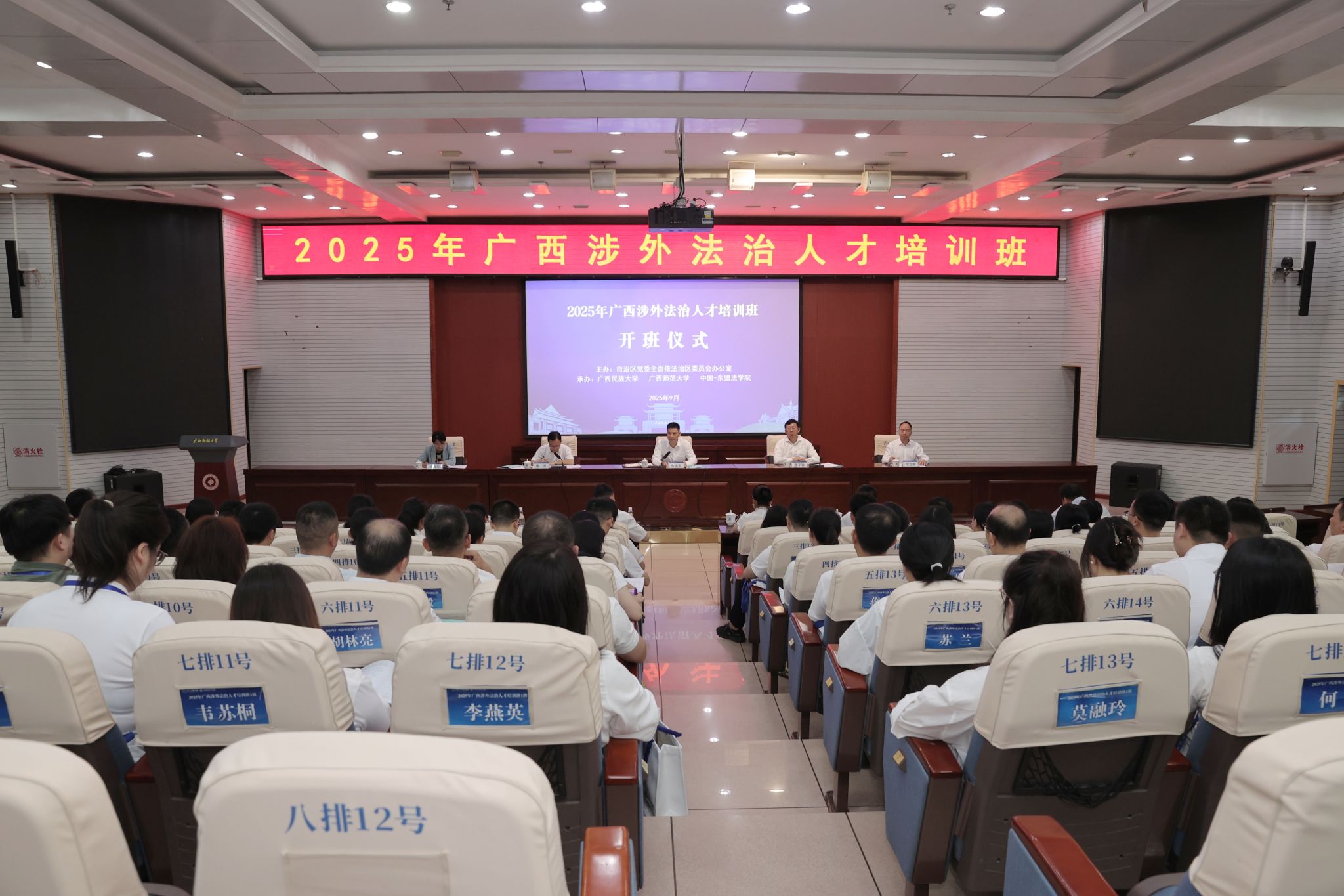 司法部、自治区司法厅及中国-东盟法学院的有关专家和负责人,培训班全体学员参加开班仪式。(初审:高文涛 复审:潘之铭 李建瑾 终审:孙寿媚)