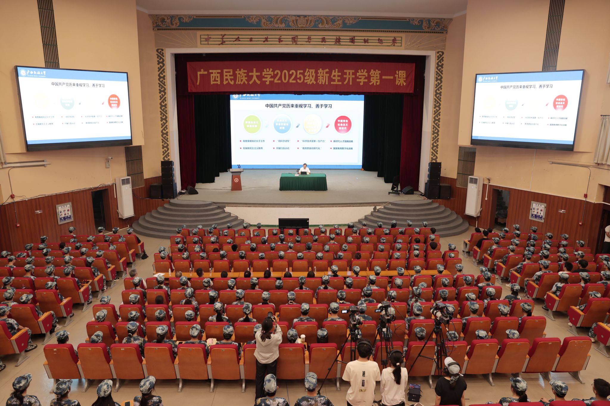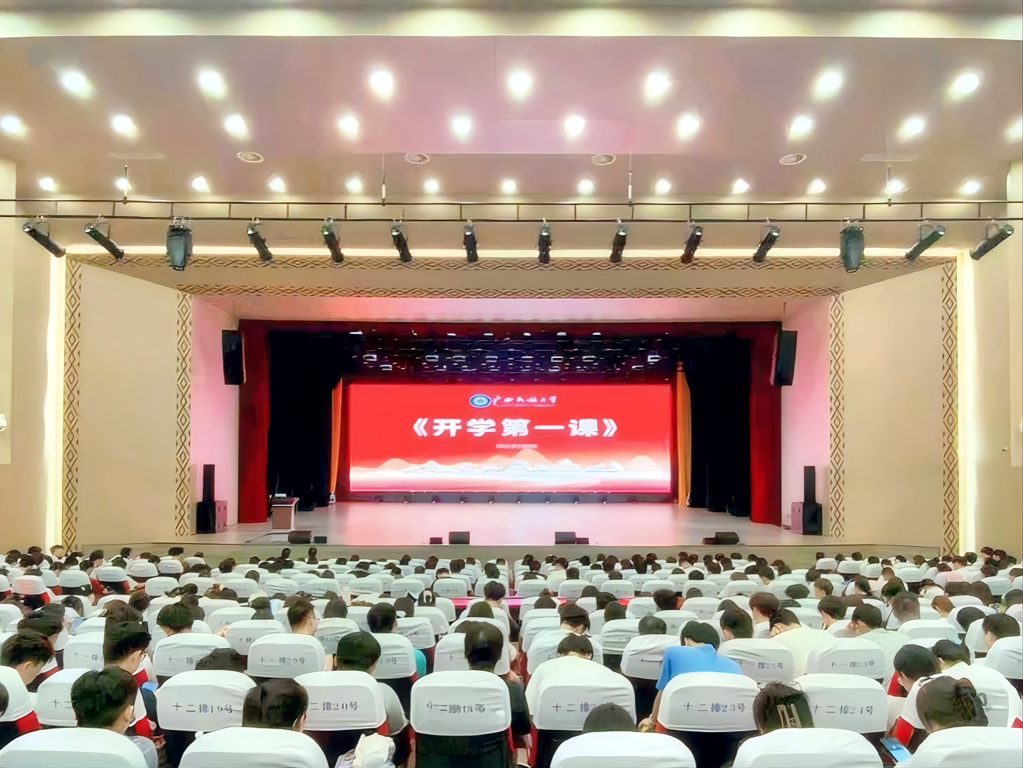 【大学生通讯社报道】9月8日晚,beat365亚洲体育官方网站2025级新生“开学第一课”在相思湖校区、思源湖校区、武鸣校区同步举行。校党委书记唐平秋围绕“以学习为帆,在青春的征程中引领人生航向”作专题讲授,2025级全体新生同上“开学第一课”。