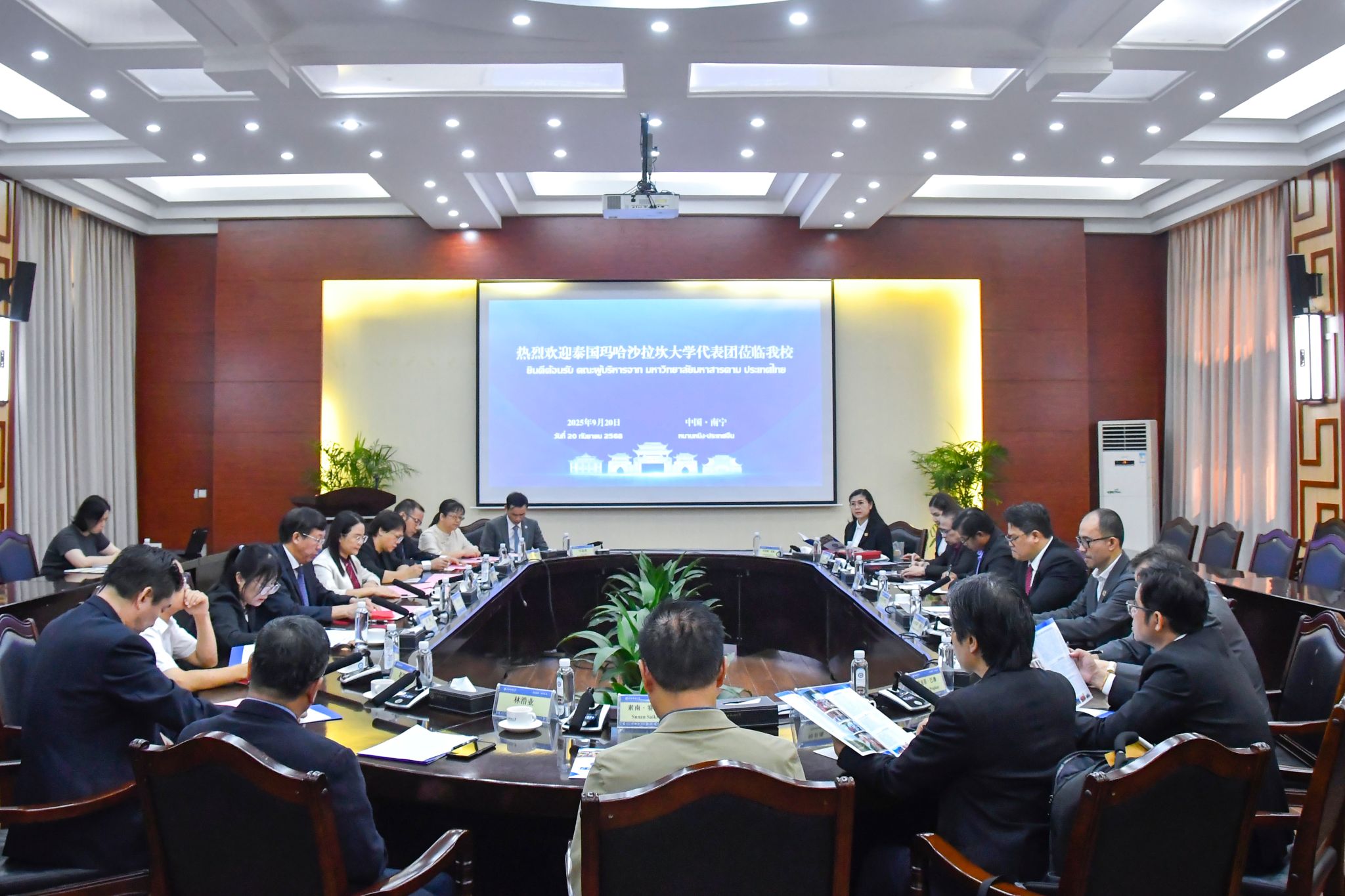 唐平秋介绍学校的历史沿革、国际交流合作、留学生培养等方面情况。他表示,beat365亚洲体育官方网站始终坚持“民族性、区域性、国际性”的办学特色,立足区位优势,积极开展与东盟多所高校的学术合作,国际化办学成效显著。希望两校进一步加强在科技创新、学科建设、人工智能等领域合作,实现互利共赢,助力中国-东盟命运共同体建设。