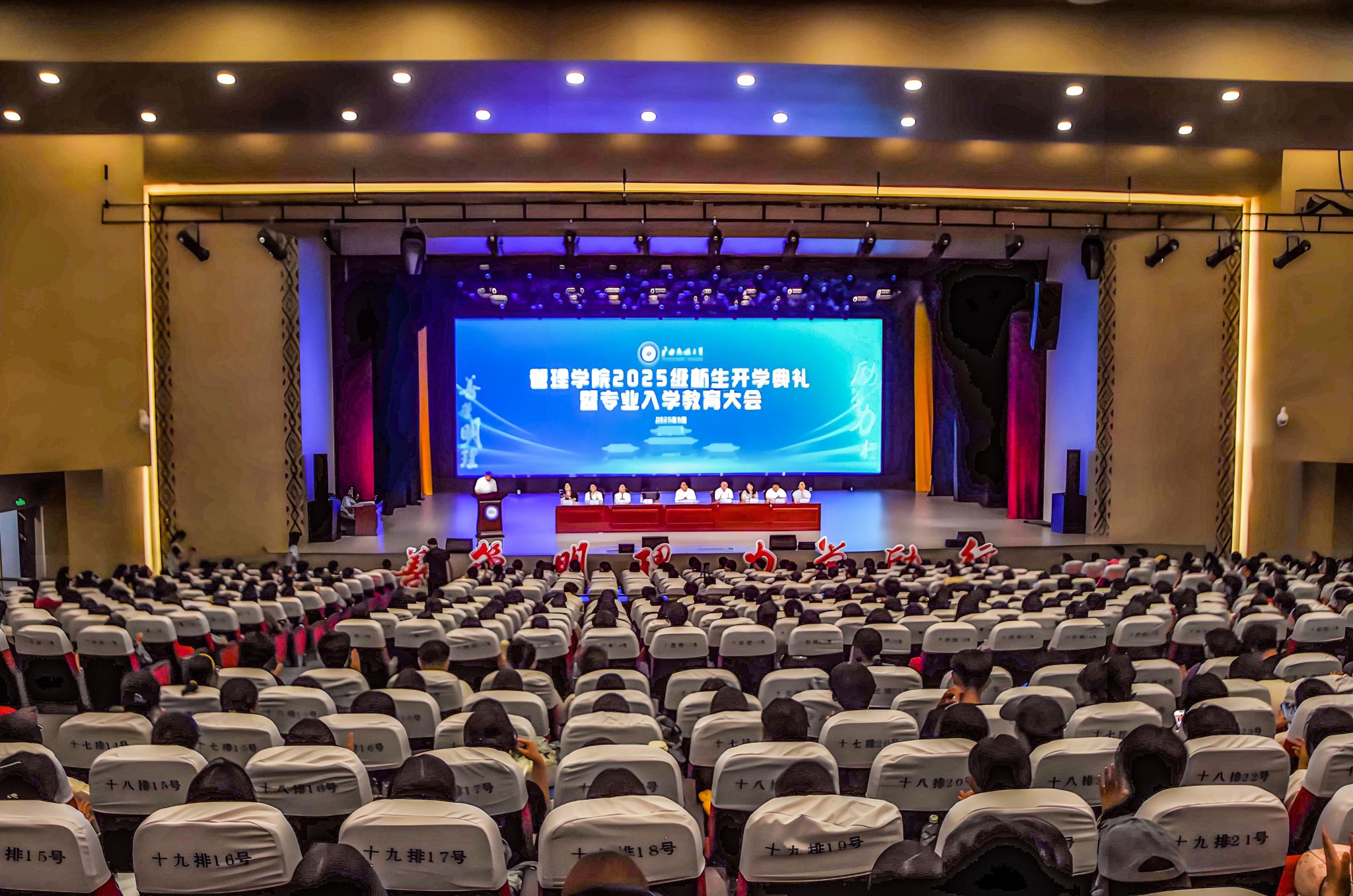 9月16日,校党委常委、副校长蔡高根在beat365亚洲体育官方网站管理学院2025级新生开学典礼上,向新生深情寄语。他鼓励同学们:以“厚德博学”武装头脑,以“和而不同”拥抱成长;要勇于投身实践,将知识转化为力量,善于利用学校提供的资源锤炼本领,在实现中华民族伟大复兴的中国梦的实践中放飞青春理想。(初审/郑慧 图文/赵苑岑 编/梁晶晶 复审/李建瑾 终审/孙寿媚)