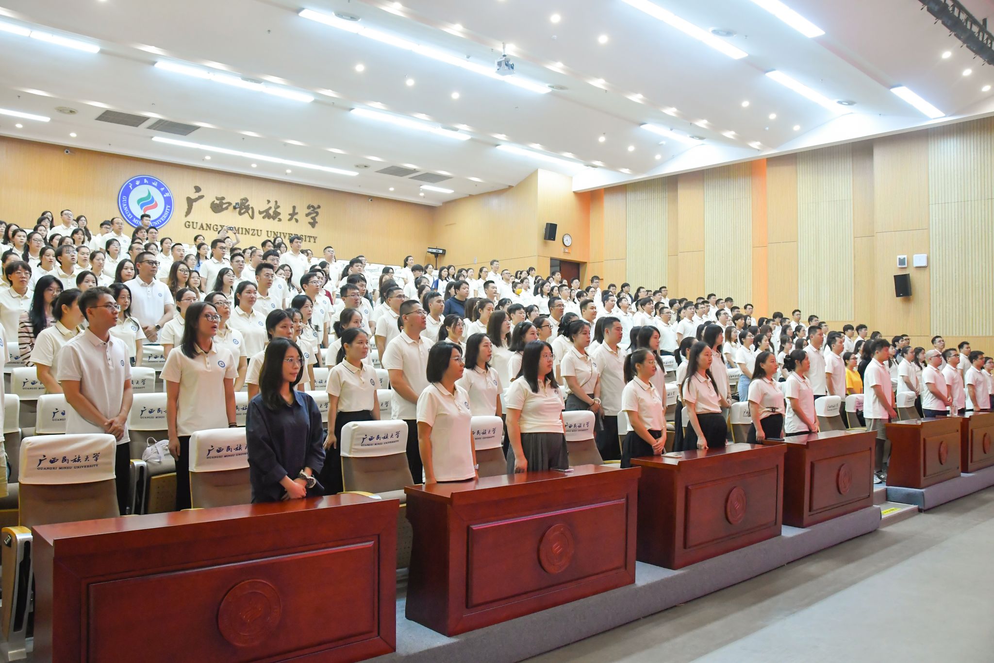 典礼上,全体师生齐唱国歌、校歌。典礼结束后,与会师生合影留念。(初审:吴成林 编辑:梁晶晶 复审:韦利坤 终审:孙寿媚)