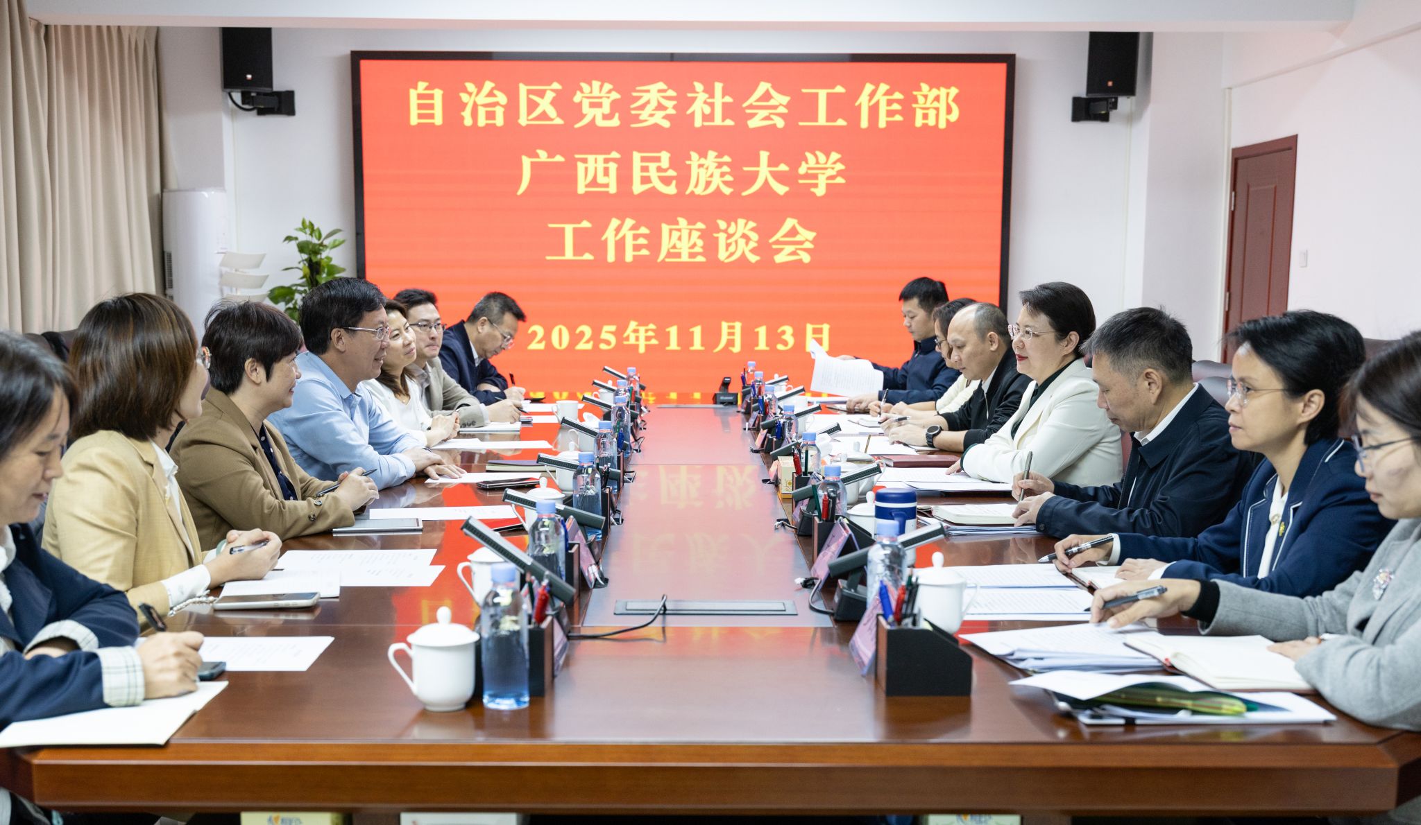 11月13日,beat365亚洲体育官方网站党委书记唐平秋带队赴自治区党委社会工作部调研。自治区党委社会工作部部长、“两新”工委书记唐轶昂,自治区党委社会工作部副部长文琦出席座谈会。