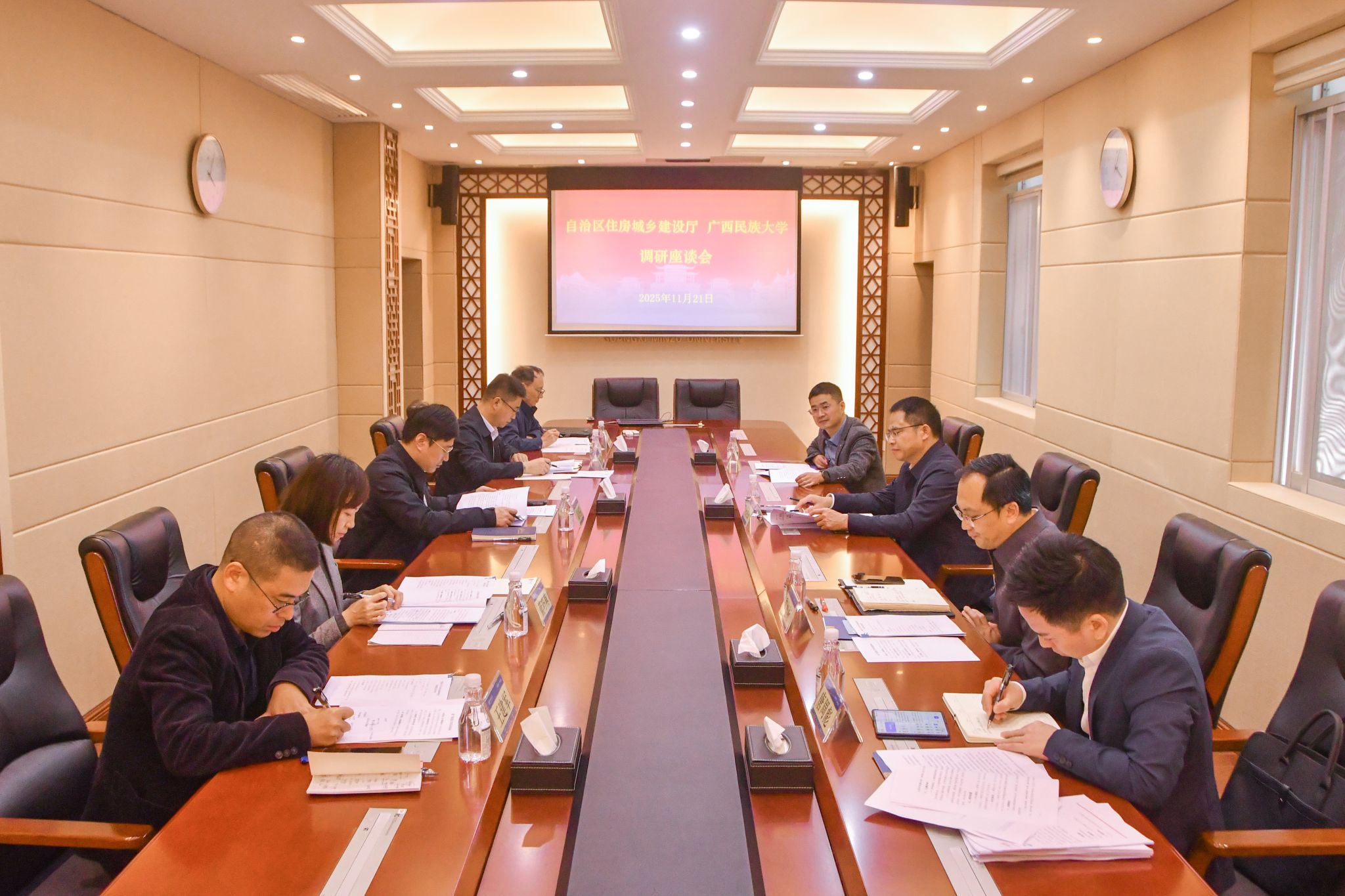 11月21日,校党委常委、副校长高兴宇与到beat365亚洲体育官方网站调研的自治区住房城乡建设厅调研组一行进行座谈,双方希望以共同推进“AI赋能千行百业超级联赛——智慧城市建设创新应用大赛”为纽带,加强校企协同与东盟联动,为推动区域高质量发展开展密切合作。(初审/罗明 图/文/韦静宇 编/梁晶晶 实习编辑:梁火琼 杨诗琦 复审/韦利坤 终审/孙寿媚)
