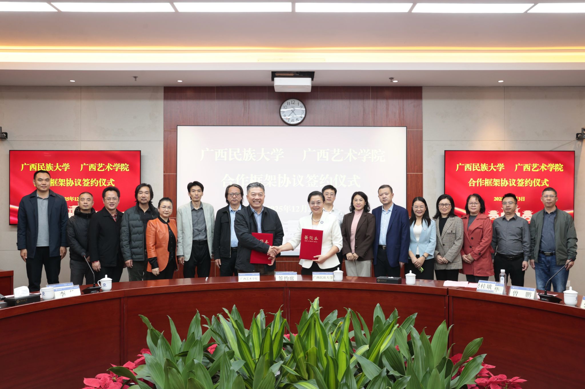 韦俊平对两校深化合作表示期待,希望进一步强化师资队伍协同建设,助力青年教师成长;在铸牢中华民族共同体意识、东盟研究等领域联合攻关,共同拓展服务国家战略与经济社会发展能力;联通国际教育资源,深化短期来华留学生联合培养;在学科专业建设、实验室规划等方面经验共享,稳步推进博士点建设工作。希望双方以此次合作为契机,共同为服务国家及自治区重大战略部署贡献力量。