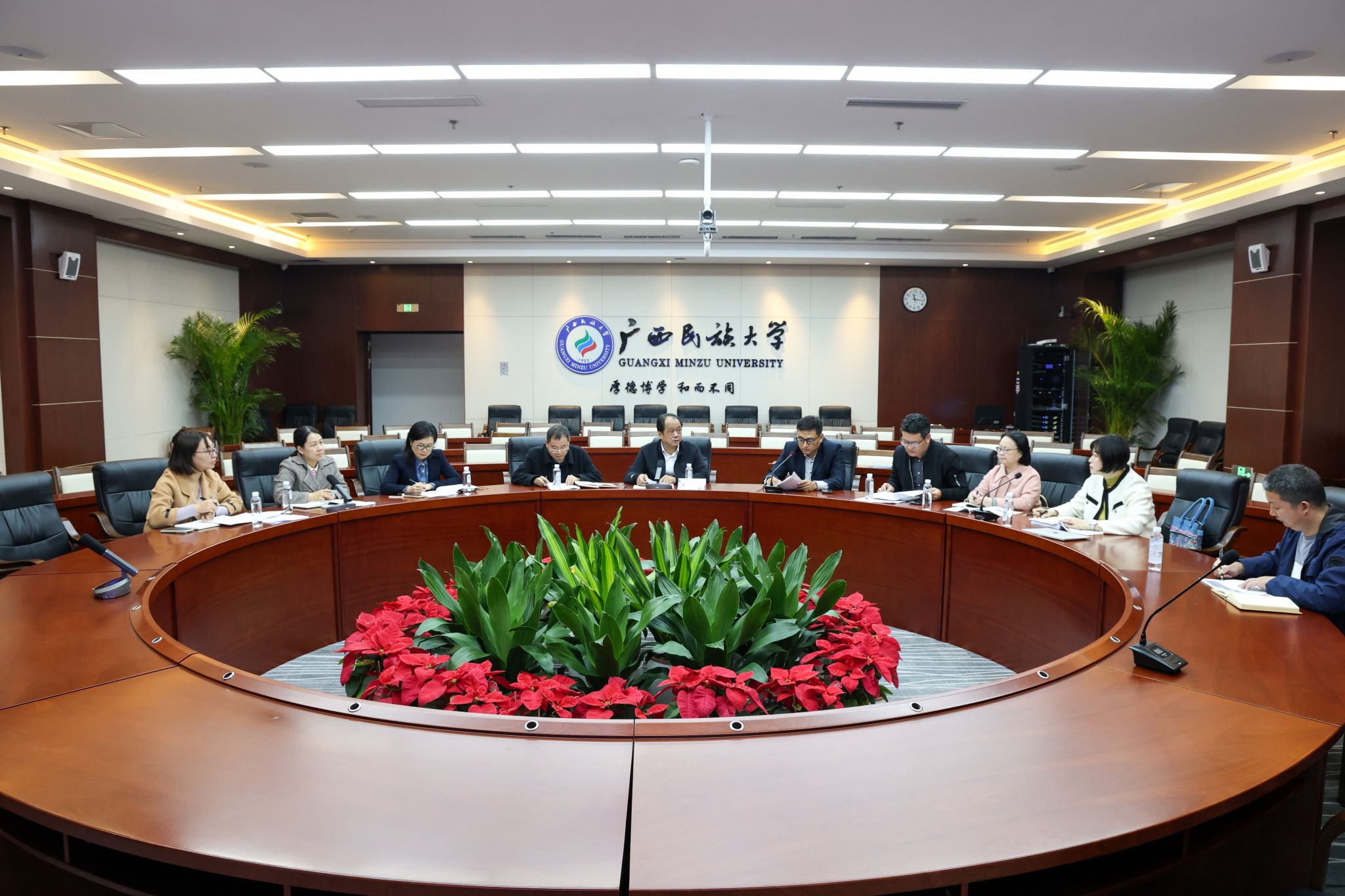 12月9日,校党委常委、副校长吕俊彪会见来访的桂林旅游学院副校长刘旸一行,双方围绕校内商业街管理运营模式、食堂管理成功做法等内容进行深入交流。(初审/卢俊华 图文/吴浩 编/梁晶晶 实习编辑:梁火琼 杨诗琦 复审/韦利坤 终审/孙寿媚)