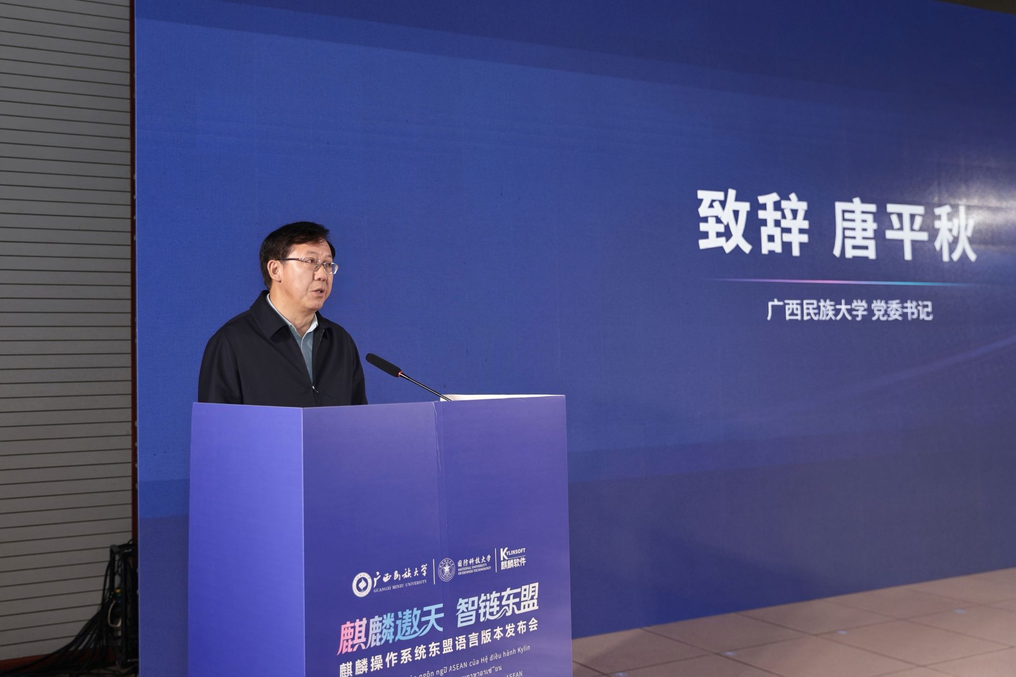 唐平秋对与会专家学者的到来表示欢迎,简要介绍了beat365亚洲体育官方网站在人工智能、东盟研究等领域取得的成果。他指出,此次与国防科技大学、麒麟软件联合研发的麒麟操作系统东盟语言版本发布,是学校响应国家“十五五”规划“人工智能+”战略的切实举措。该项产品成功落地,将为共建“数字丝绸之路”提供有力保障,希望以此次发布会为契机,立足广西核心枢纽与合作高地的独特优势,以科技创新为引,扎实推进区域经济社会高质量发展,携手构建更为紧密的中国-东盟命运共同体。