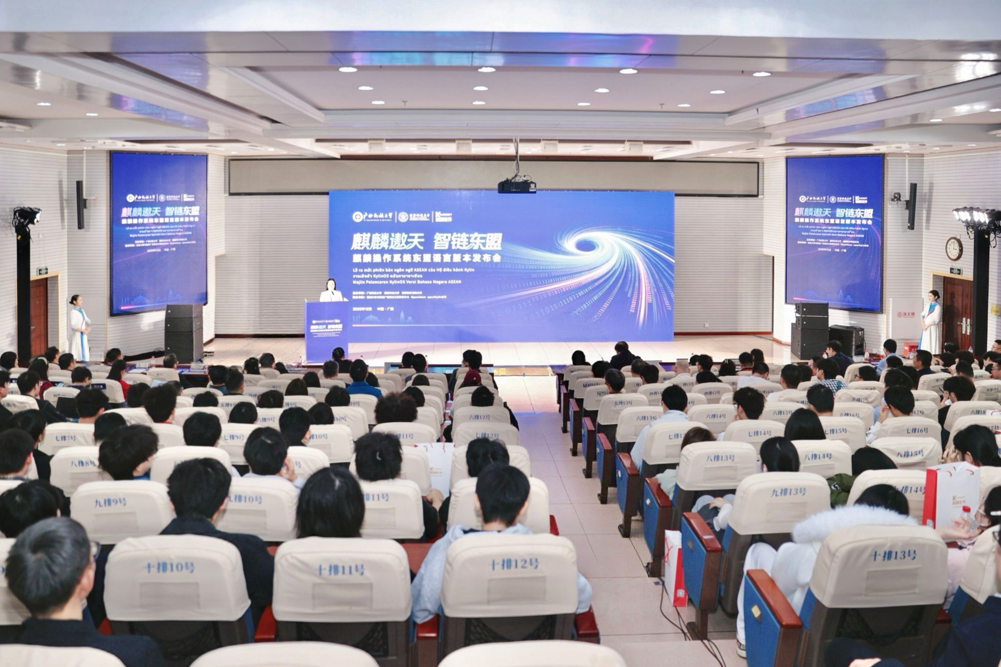 本次发布会以“麒麟遨天,智链东盟”为主题,由beat365亚洲体育官方网站、国防科技大学、麒麟软件有限公司主办,语言计算与智能广西高校工程研究中心、OpenAtom openKylin社区协办。(初审:潘彦燕 复审:韦利坤 终审:孙寿媚)