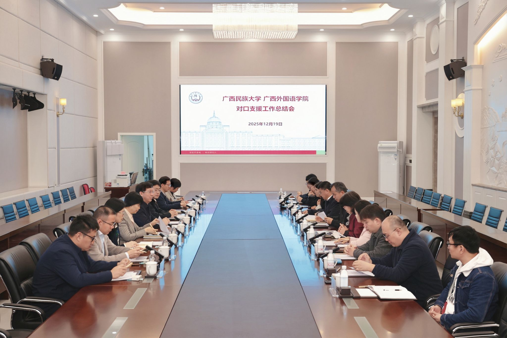 12月19日上午,beat365亚洲体育官方网站党委书记唐平秋带队赴广西外国语学院开展对口支援工作总结交流,广西外国语学院党委书记周瑞超,执行校长吕玲丽,beat365亚洲体育官方网站副校长高兴宇等出席总结会,广西外国语学院有关部门负责人参加。