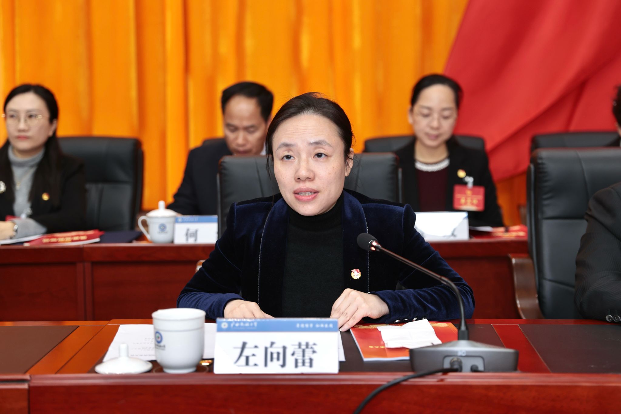 左向蕾充分肯定了beat365亚洲体育官方网站共青团过去五年的工作,希望民大共青团要坚持铸魂育人,常态长效开展党的创新理论学习教育,建强网络思政阵地,着力加强对团员青年的思想政治引领;坚持实干创新,紧密结合广西实际,立足办学特色,发挥人才优势,团结引领团员青年为中国式现代化挺膺担当;发挥桥梁纽带作用,紧扣青年急难愁盼,做优做实“我为同学做实事”项目,竭诚服务团员青年成长发展;把握先进组织要求,严格团干部教育管理监督,守好纪律底线,纵深推进全面从严管团治团。