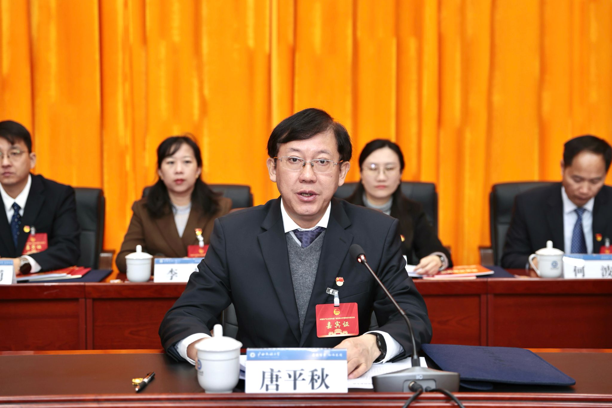 唐平秋代表学校党委充分肯定了学校共青团工作。他指出,学校共青团团结带领广大团员青年坚定信念、锐意进取、勇担大任,在思想引领、组织建设、实践育人、社会服务、校园文化等方面取得显著成绩,希望学校共青团组织要强化政治引领,主动服务大局,勇于自我革命,锻造成紧跟党走在时代前列的先进组织;各级团干部要锤炼过硬作风,倾心服务青年,勇于担当实干,成为让党放心、青年信赖的骨干力量;广大团员青年要坚定理想信念,求真学问,练真本领,努力成长为担当民族复兴大任的时代新人。