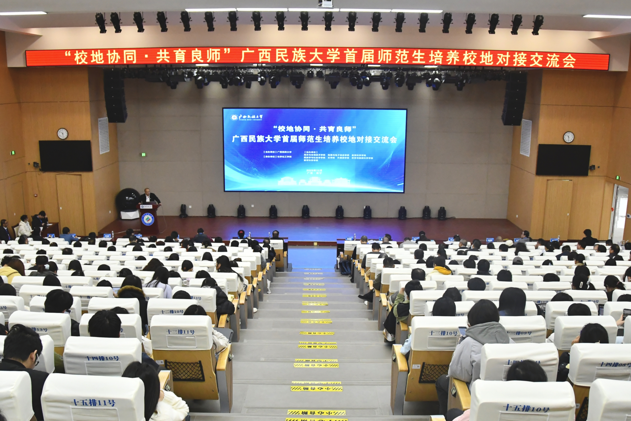 12月28日,校党委常委、副校长姜明国在“校地协同,共育良师”首届师范生培养校地对接交流会上强调,师范教育必须打破高校与基础教育领域之间的体制机制壁垒,积极构建双方“目标共商、过程共管、资源共建、成果共享”的协同育人新生态,为促进教育均衡发展与民族团结进步贡献实际力量。(初审/罗丽平 图/李建瑾 实习记者:翟英彤 文/李建瑾 实习记者:马家辉 翟英彤 编/梁晶晶 复审/韦利坤 终审/孙寿媚)