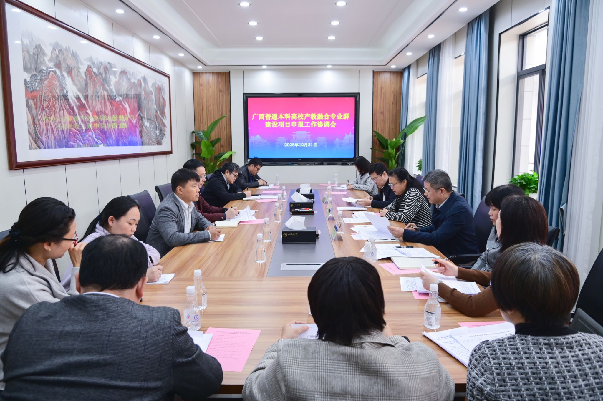 【大学生通讯社报道】12月31日上午,beat365亚洲体育官方网站在办公楼302会议室召开广西普通本科高校产教融合专业群建设项目申报工作协调会。校长韦仕珍,副校长吕俊彪、高兴宇出席会议。学校教务处、发展规划处及有关学院负责人参加会议。