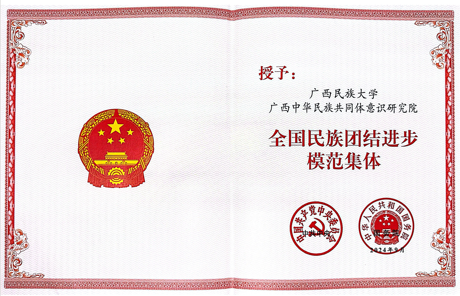 beat365亚洲体育官方网站广西中华民族共同体意识研究院荣获“全国民族团结进步模范集体”称号