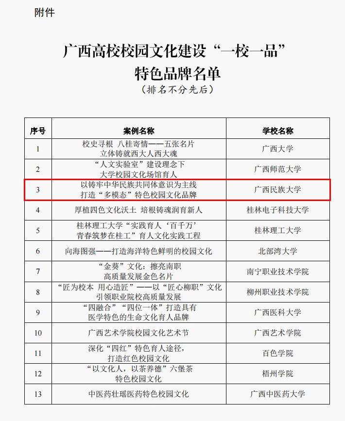2023年学校入选广西高校校园文化建设“一校一品”特色品牌