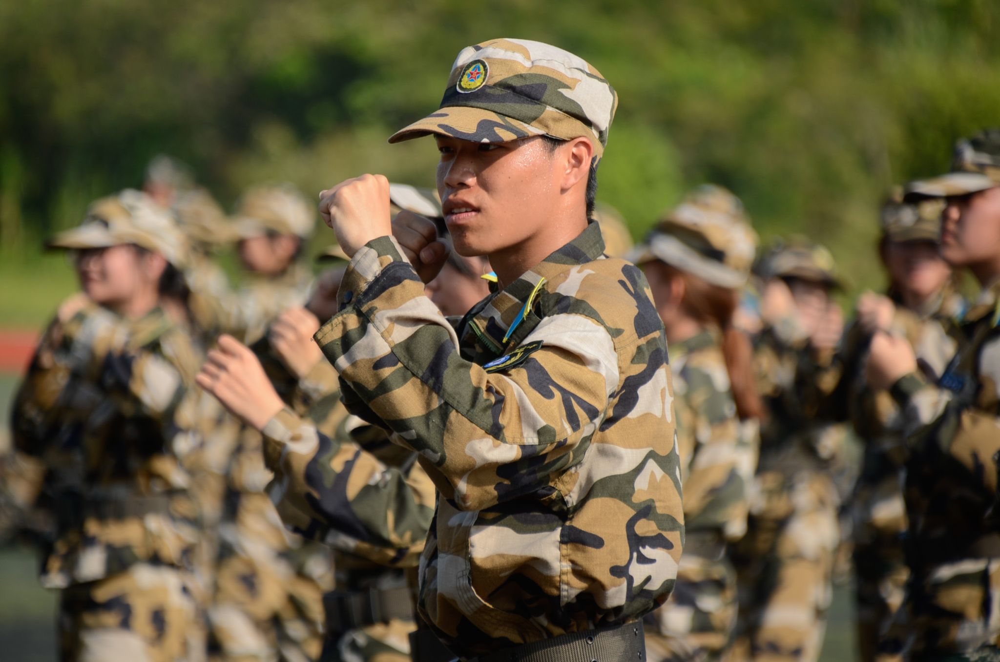 烈日的曝晒磨练他们的意志,挥洒的汗水坚定他们的信念,军绿色的迷彩彰显他们青春的底色。(编辑:闭琼月 校对:蒋欣遥)
