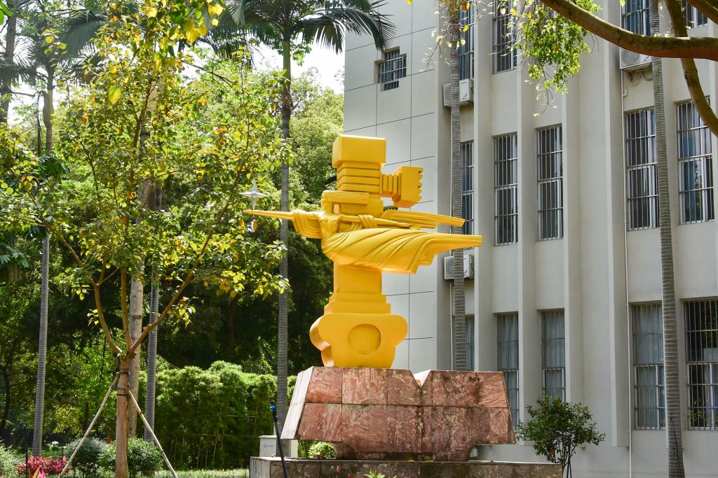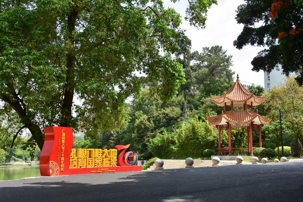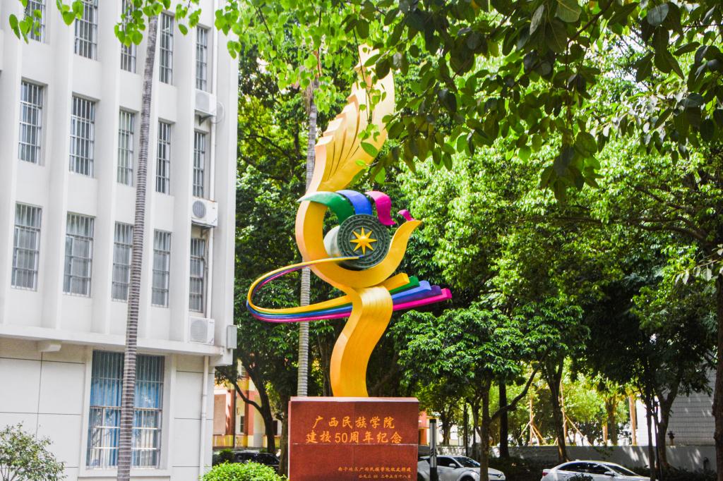 校园中的每个场景,都是教育的一部分。校道旁新绿叠翠,教学楼修葺一新,雕塑新漆,校徽更新,民大旧貌换新颜,奋启新征程。