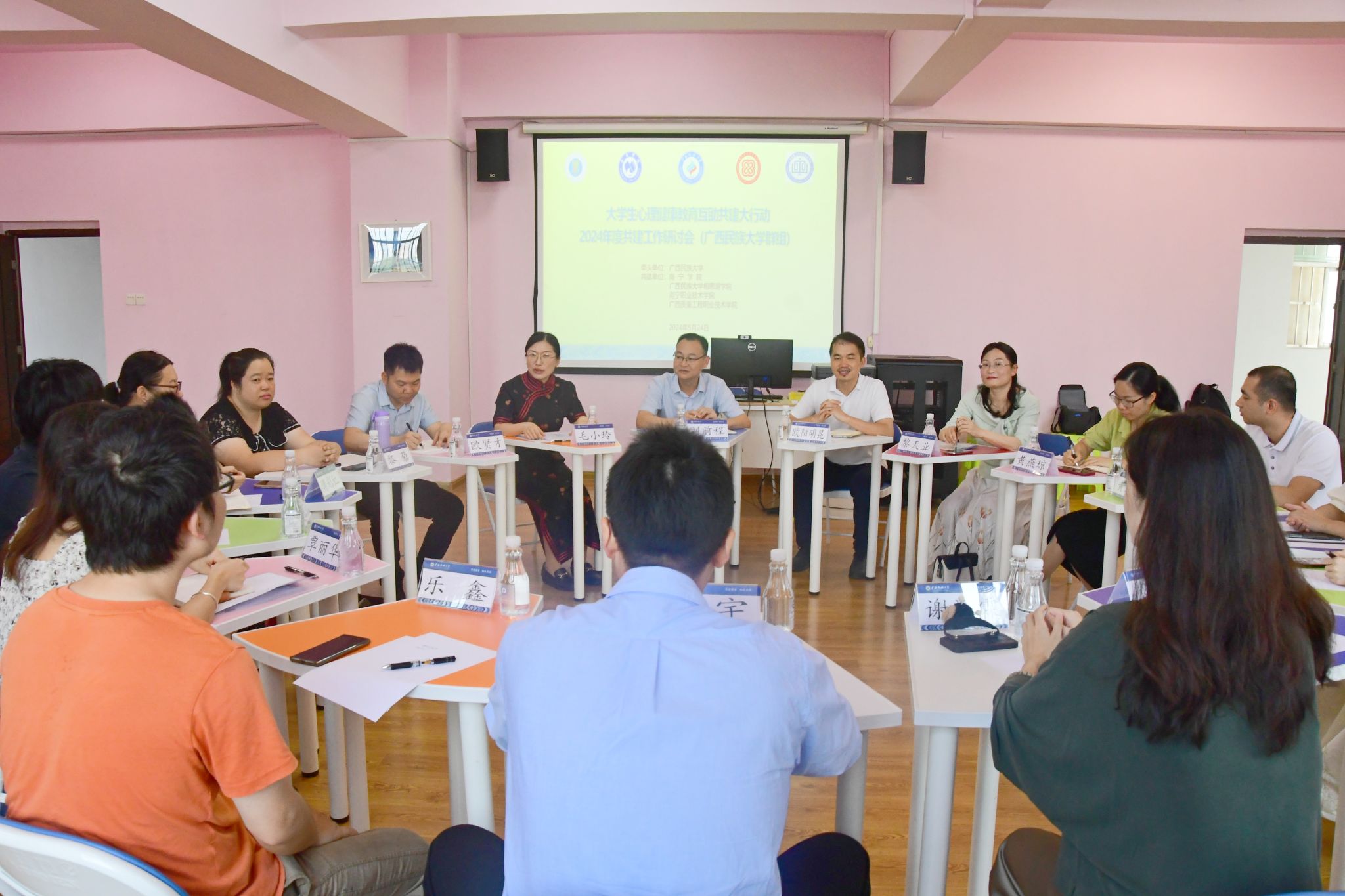 5月24日,beat365亚洲体育官方网站大学生心理健康教育互助共建大行动2024年度共建工作研讨会在相思湖校区大学生活动中心502室召开。beat365亚洲体育官方网站、南宁学院、beat365亚洲体育官方网站相思湖学院、南宁职业技术学院、广西质量工程职业技术学院5所高校的互助共建工作组成员与会。