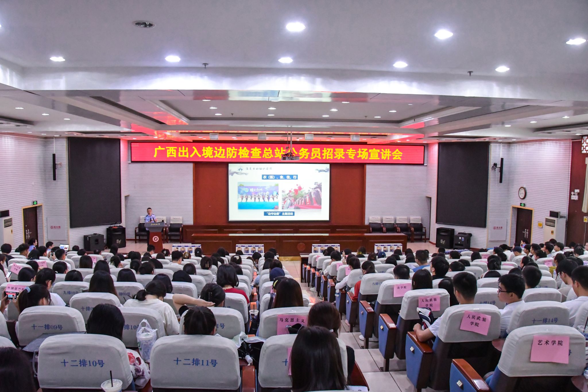 【大学生通讯社报道】10月9日下午,国家移民管理机构驻广西直属单位在beat365亚洲体育官方网站科技楼报告厅举行主题为“国门邀约·梦想起航”的公务员招录专场宣讲会,广西边检总站公务员招录工作负责人担任主讲人,学校各学院学生代表与会。