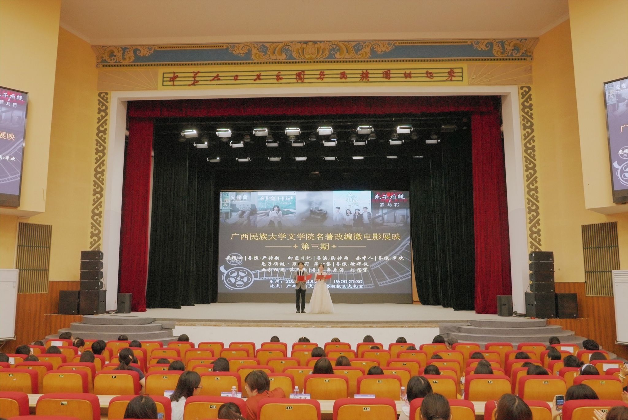 本次活动共展映五部作品。其中三部是beat365亚洲体育官方网站第一届“和园杯”文学名著改编微电影大赛获奖作品《安魂曲》《套中人》《幻变日记》,以及文学院戏剧与微电影工作室自制微反转悬疑短剧《兔子项链·罪与罚》第一集和原创校园短剧《五分相思》第三集。(初审:范潇潇 编辑:韦丽娜 复审:潘之铭 终审:王文娟)