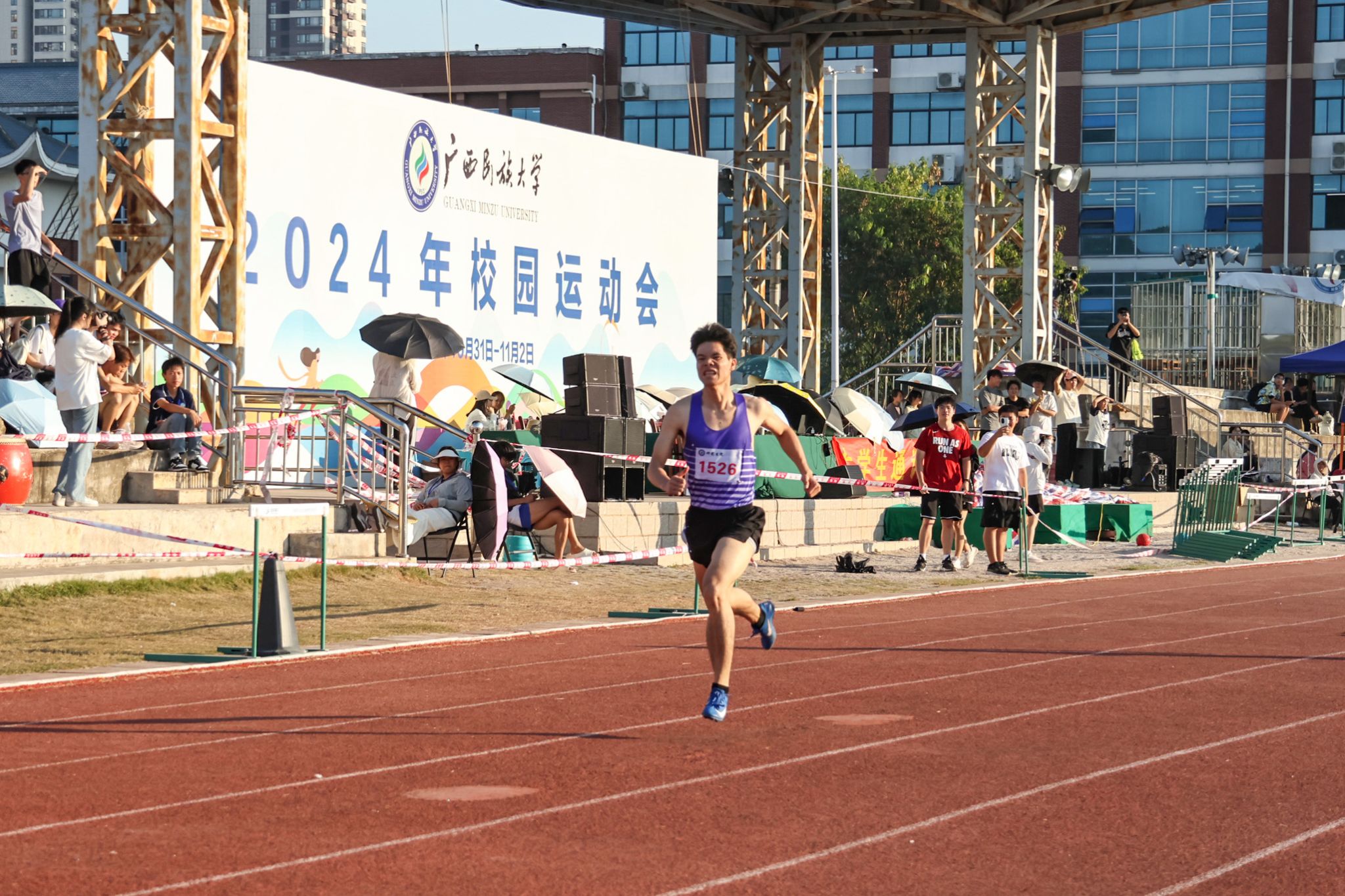 【大学生通讯社报道】11月1日下午4时,2024年校园运动会男子、女子甲组400米比赛在思源湖校区李宁田径场进行。研究生院2024级体育教育训练学专业利勇强以55秒80的成绩夺得男子甲组400米决赛冠军。艺术学院2022级环境设计专业陆桂妮以1分13.85秒的成绩获得女子甲组400米决赛冠军。