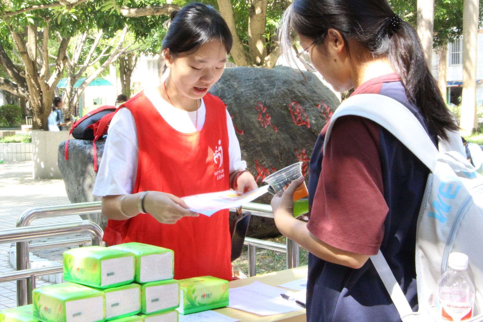 大一时,2023级物理与电子信息学院物理学专业蒙燕鸿因一次偶然的契机加入青年志愿者协会红爱队,从此与志愿服务结缘。蒙燕鸿第一次参加的活动是在2023年12月举办的“血车进校”活动,这对她来说是一次全新的体验:她在填表区耐心引导献血者,与形形色色的献血者交流,感受到了“被需要的温暖”。