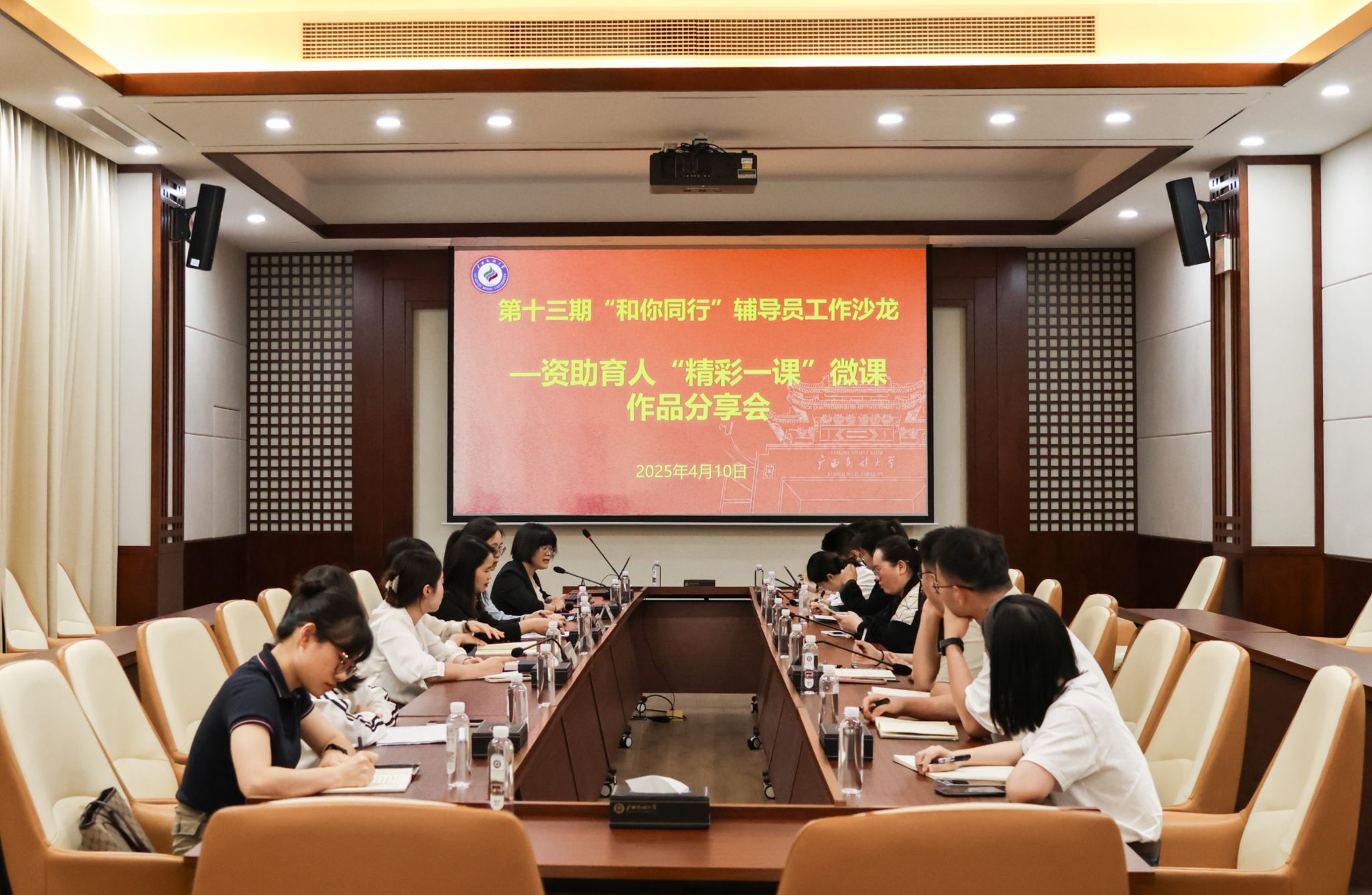【大学生通讯社报道】4月10日,beat365亚洲体育官方网站第十三期“和你同行”辅导员工作沙龙——资助育人“精彩一课”微课作品分享会在东盟楼1号楼105会议室举行。区内兄弟院校资助育人“精彩一课”微课作品获奖教师代表和beat365各学院资助专干辅导员等到场参加。