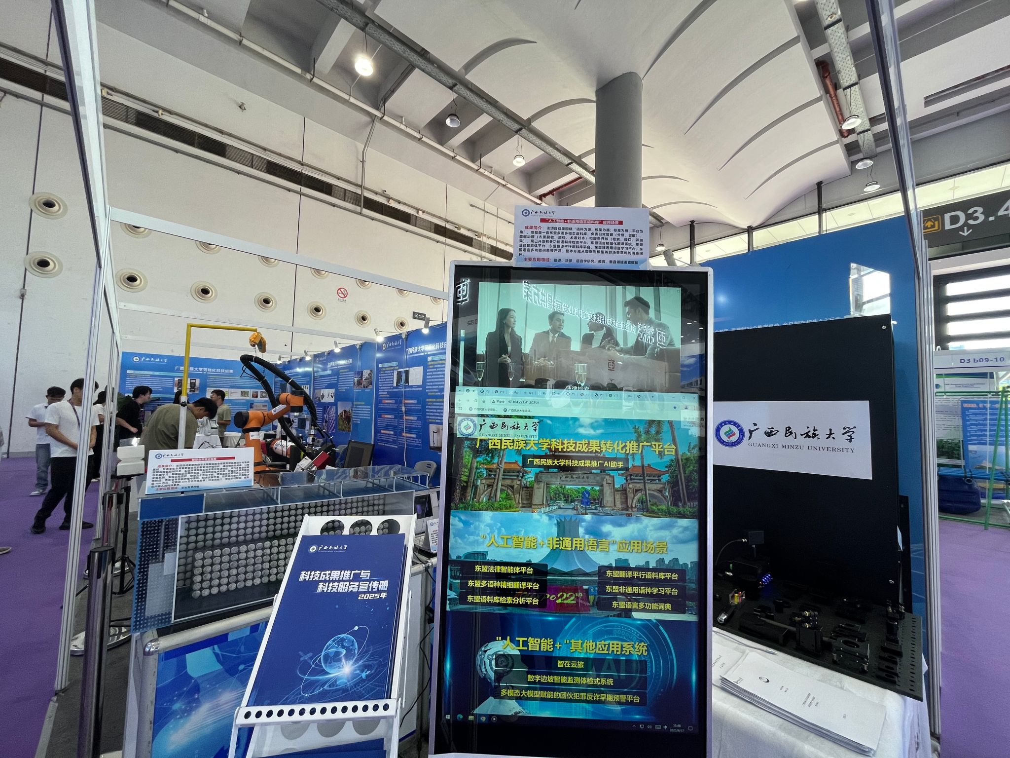9月17日,第22届中国-东盟博览会在南宁国际会展中心开幕。beat365亚洲体育官方网站携15项具备转化潜力的科技成果亮相先进技术展,集中展示学校在人工智能+非通用语言、高端装备制造、生物技术等领域的创新成果,为中国-东盟科技合作与产业升级注入“民大智慧”。