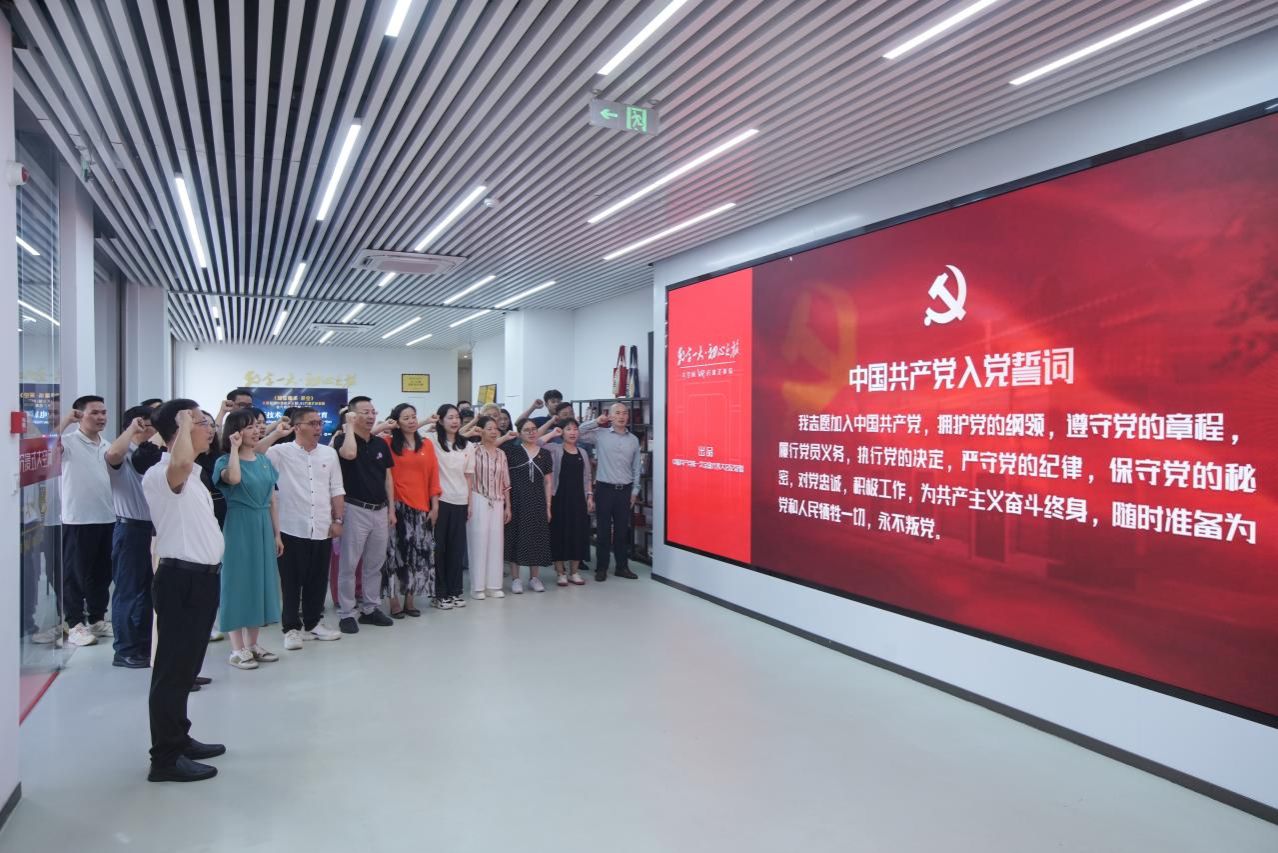 借助先进的VR技术,教师党员“走进”历史场景,沉浸式回顾中国共产党创建初期的艰苦卓绝与伟大征程,在视觉与情感的双重深化中加深对建党精神的理解与认同。学院党委书记吴大为带领全体党员重温入党誓词,铿锵有力的声音在活动现场回荡。党员们表示,通过这种生动直观的创新学习形式,进一步激发了党员的责任担当,增强了政治自觉和行动自觉。