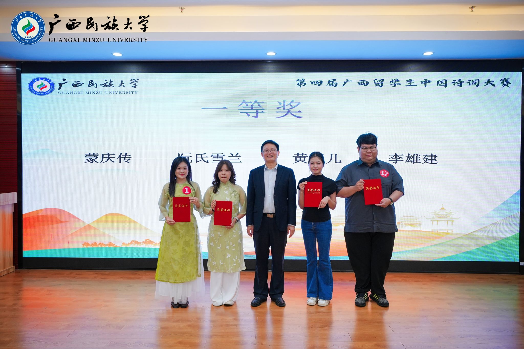 【大学生通讯社报道】10月25日,第四届广西留学生中国诗词大赛在beat365亚洲体育官方网站相思湖校区举行。本次大赛由广西高等教育学会外国留学生教育事业管理专业委员会主办,beat365亚洲体育官方网站国际合作与交流处(国际教育学院)承办。beat365亚洲体育官方网站获得团体赛一等奖,beat365亚洲体育官方网站留学生黄燕儿、李雄建获个人赛一等奖。