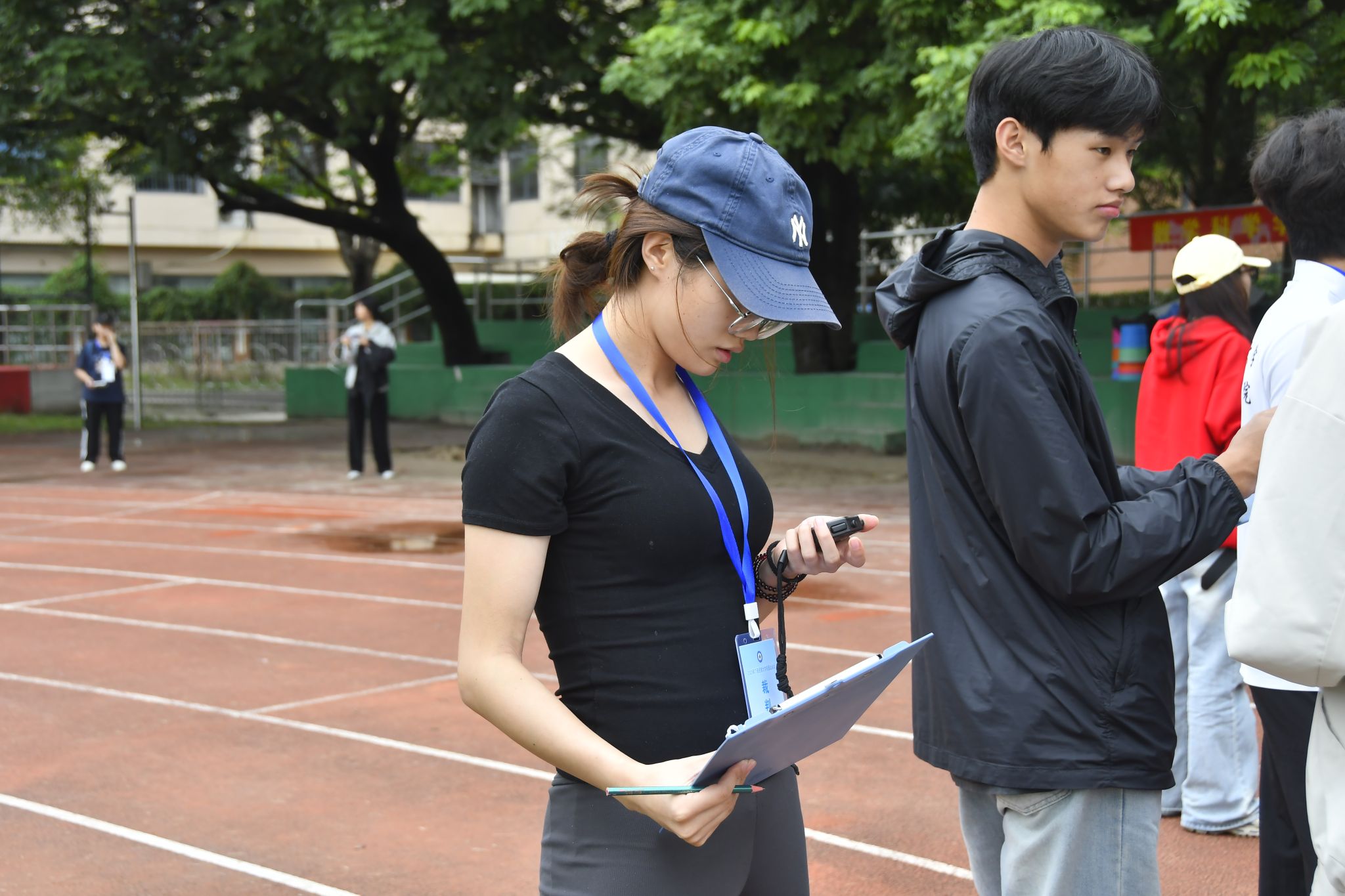 裁判员们是赛场不可或缺的守护者。他们或俯身搬运跨栏,或挥旗引导,亦专注计时……以细致严谨保障每一场比赛的顺利进行。体育与健康科学学院2024级运动训练专业的谢盈盈担任计时员,她全程专注,以“零失误”的精准守护比赛的公平与权威。