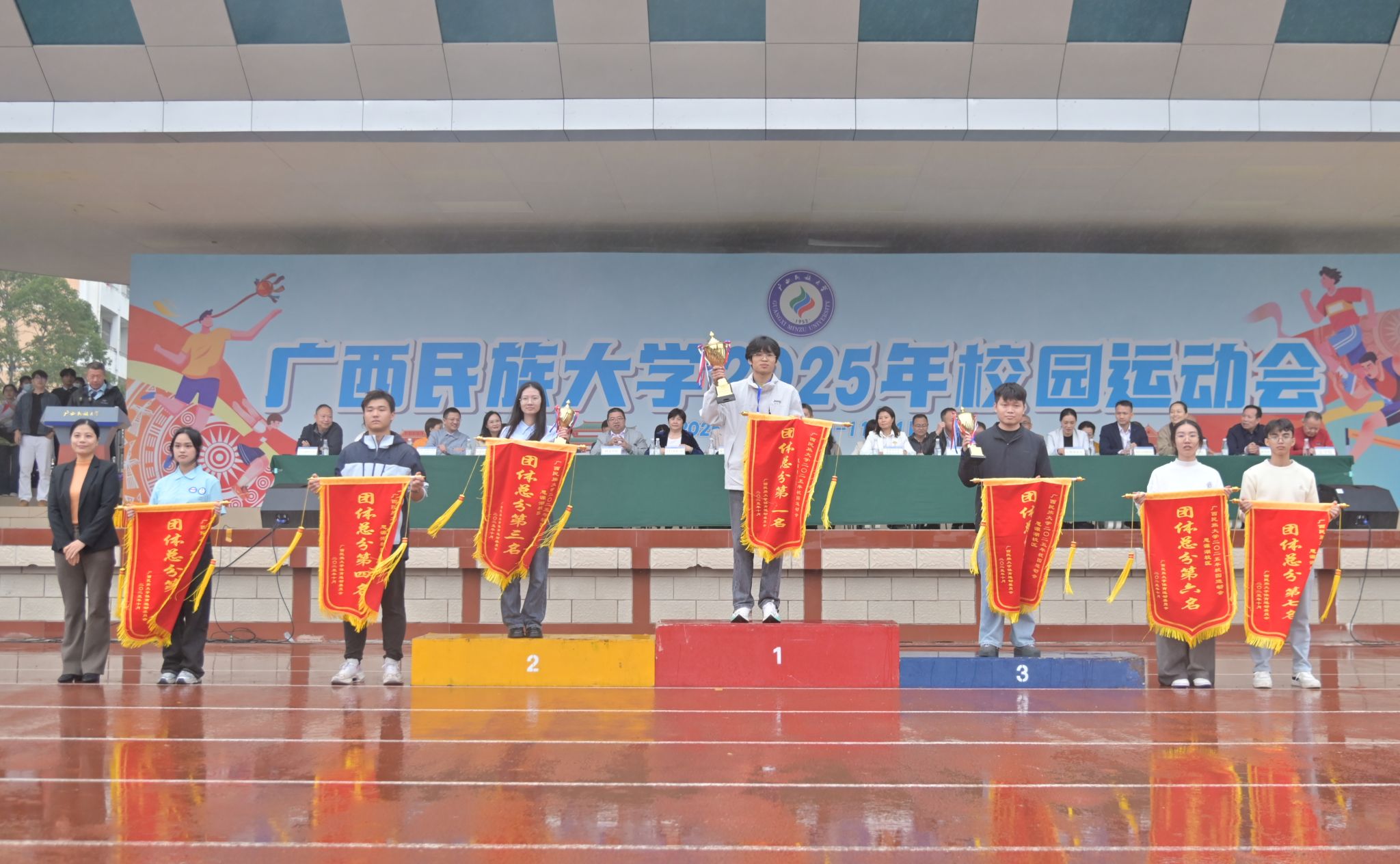 闭幕式上,总裁判长宣布比赛成绩,总决赛和各校区女子团体、男子团体、团体总分获奖的运动队及荣获精神文明奖、优秀组织奖、特别组织奖的单位依次上台领奖。