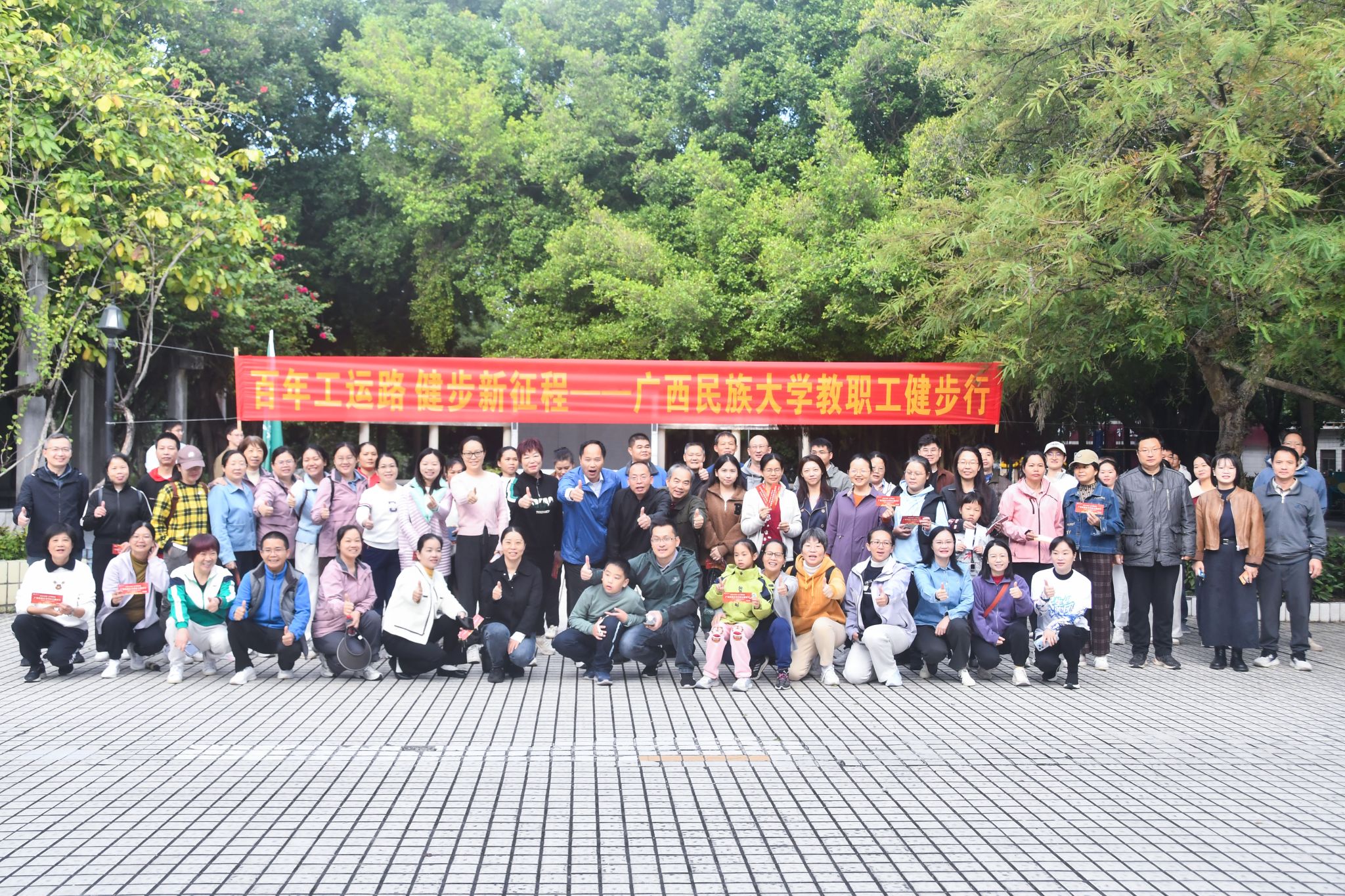 健步行活动从五坡文化广场出发,途经北门游泳馆、继续教育学院、大礼堂、四坡食堂等打卡点,最终到达终点灯光球场。教职工们步伐矫健,精神饱满,以行动弘扬工运精神、凝聚奋斗力量,展现出积极健康的精神风采。