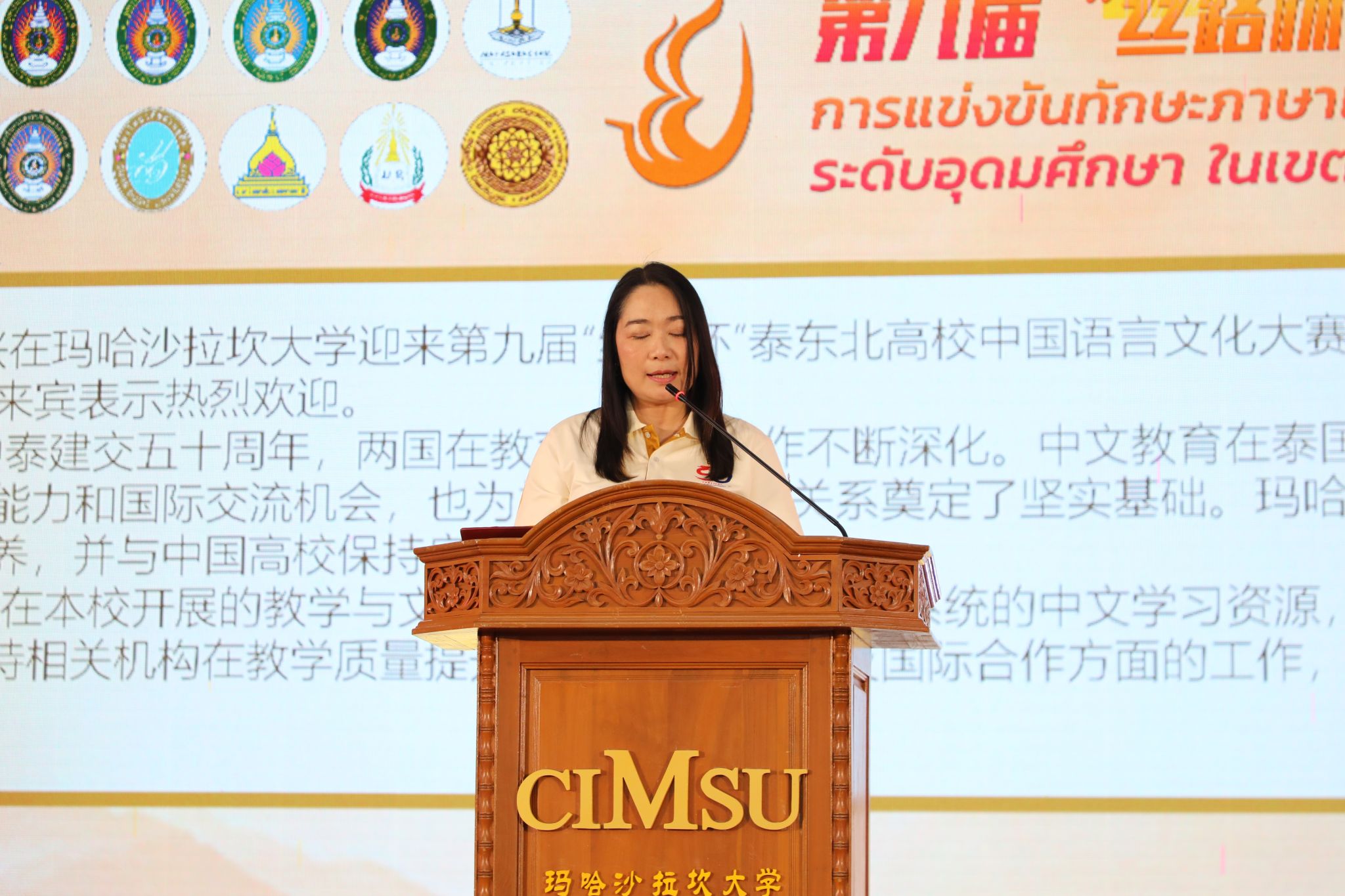 11月21日,由中华人民共和国驻孔敬总领事馆主办,玛哈沙拉坎大学孔子学院与孔敬大学孔子学院联合承办的第九届“丝路杯”泰东北高校中国语言文化大赛在泰国玛哈沙拉坎大学举行。