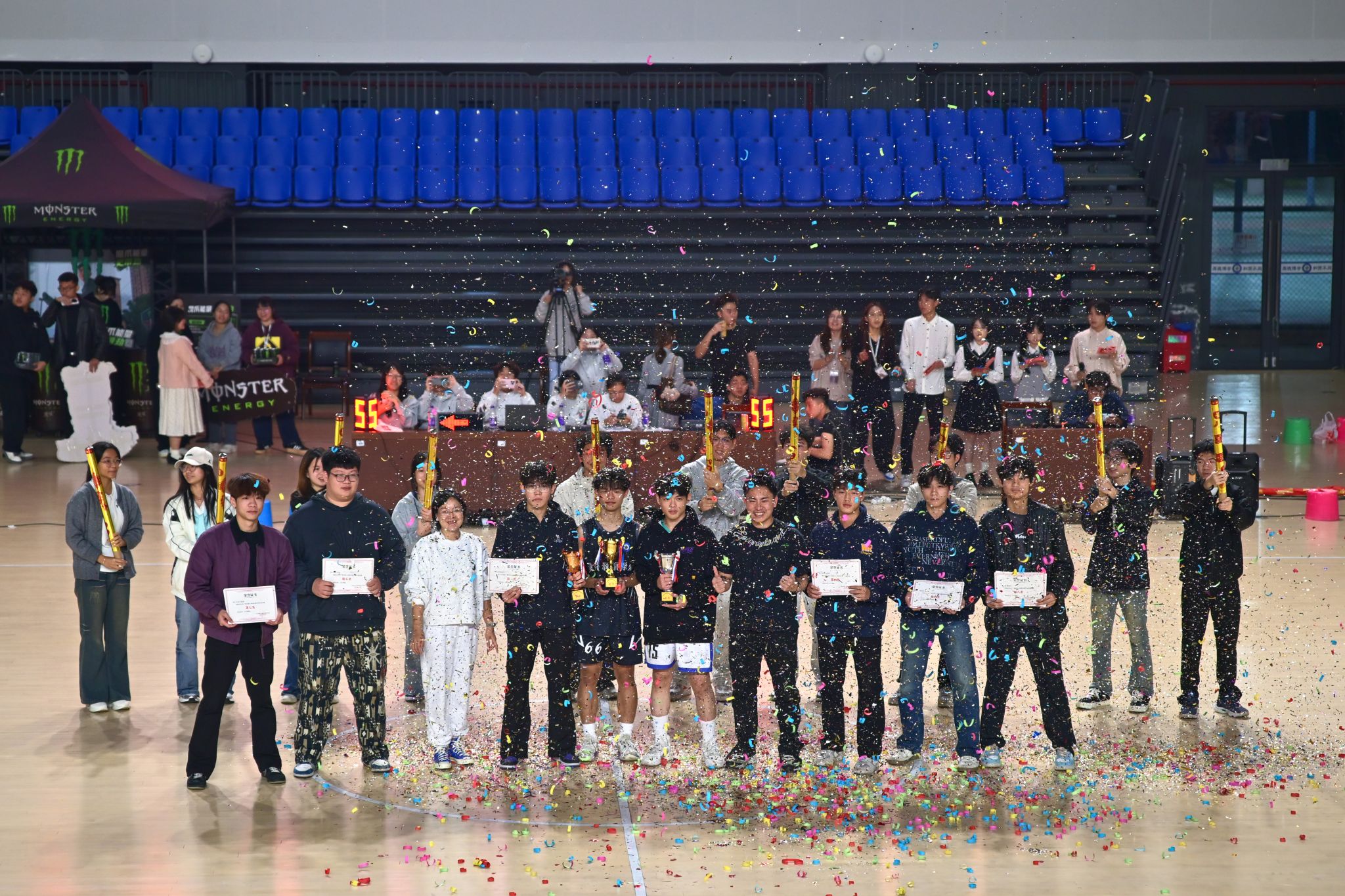 决赛现场气氛热烈,学生舞团开场表演动作整齐利落、充满张力,为赛事注入热血与活力。吴晟志为比赛开球,双方球队迅速进入状态,展开激烈拼抢,看台观众欢呼呐喊声不断。