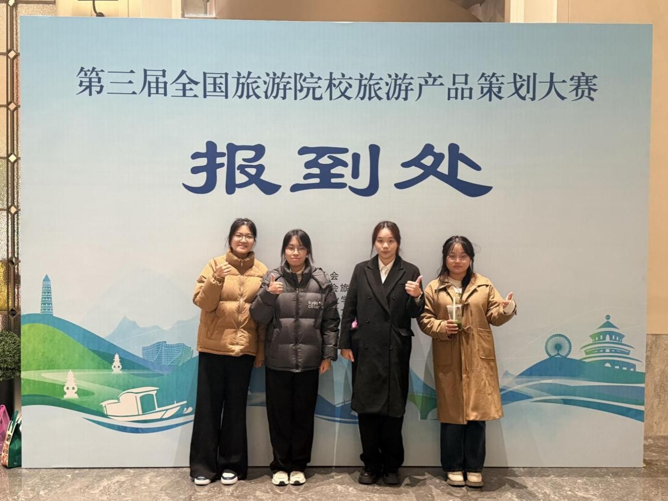 11月23日,第三届全国旅游院校旅游产品策划大赛在浙江舟山圆满落幕。beat365亚洲体育官方网站2023级旅游管理专业黄智盈、2023级工商管理专业杨丽莹、宾雨萍、邱楚楚四位同学组成的参赛团队荣获国家级二等奖。