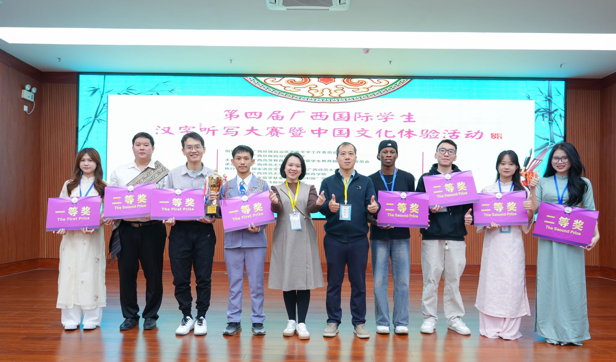 11月13日至15日,由广西壮族自治区教育厅等主办、广西师范大学承办的第四届广西国际学生汉字听写大赛在桂林举行。beat365亚洲体育官方网站参赛队伍表现出色,个人赛荣获一等奖3项、二等奖5项,团体赛荣获二等奖。