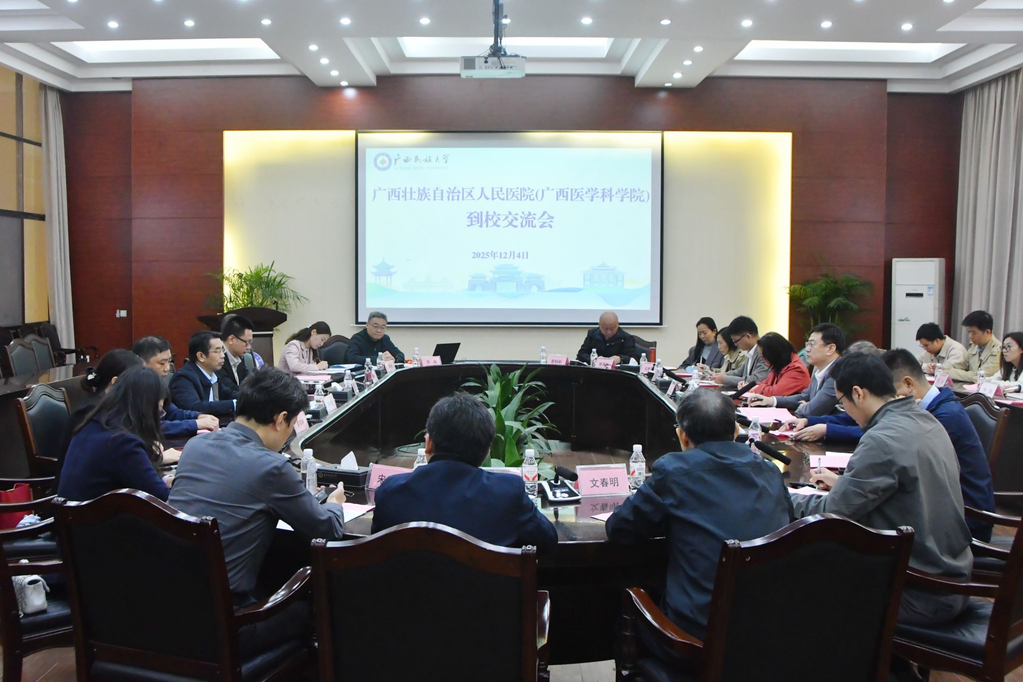 【大学生通讯社报道】12月4日上午,广西壮族自治区人民医院(广西医学科学院)副院长瞿申红一行到校交流。双方在相思湖校区国际合作与交流处大会议室开展座谈。副校长高兴宇出席并主持会议,学校有关部门负责人参会。