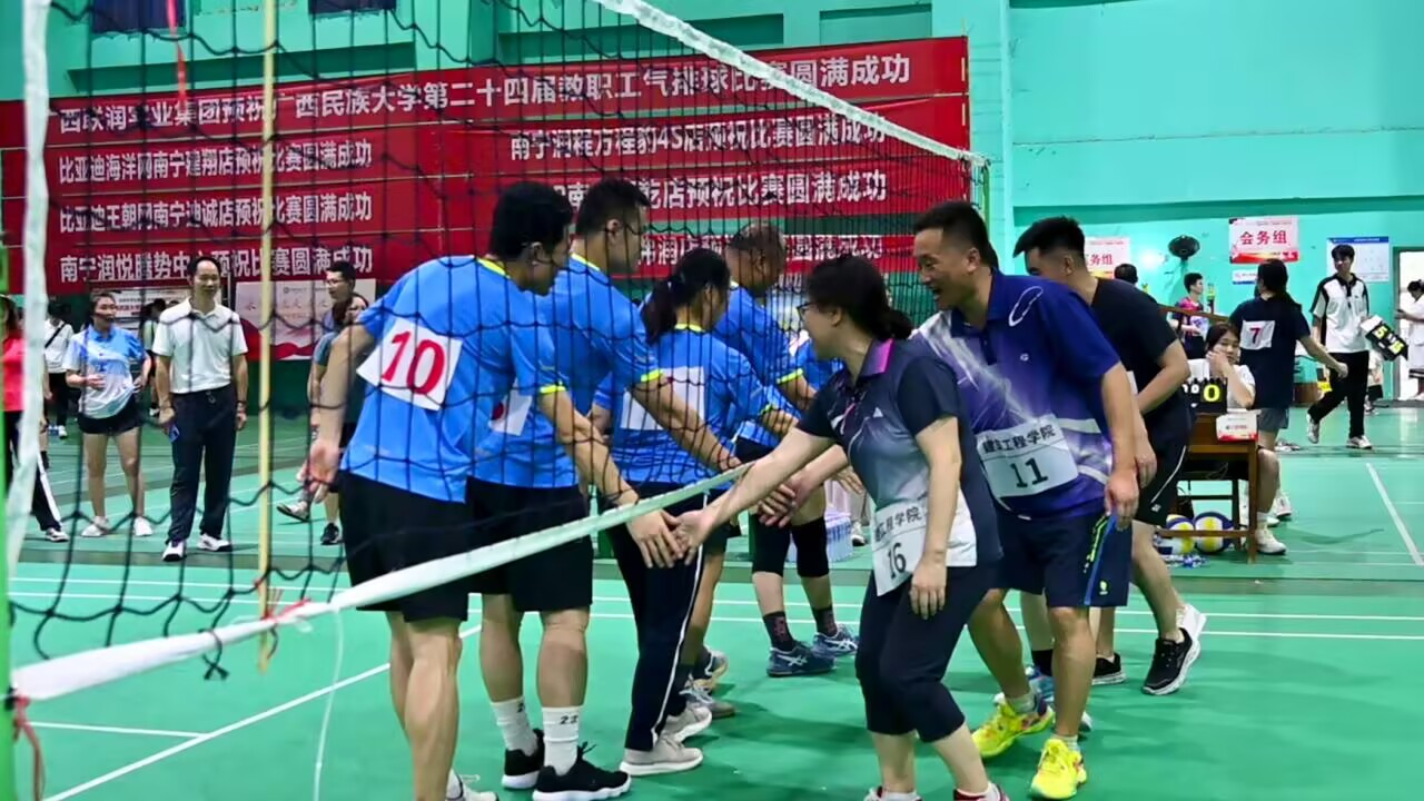 【大学生通讯社报道】5月16日—18日,庆祝中华全国总工会成立100周年系列活动之beat365亚洲体育官方网站第二十四届教职工气排球比赛在相思湖校区八坡网球馆举行。校党委副书记、工会主席陈铭彬,校党委副书记、纪委书记韦雪芳出席开幕式。经过激烈角逐,后勤基建处获得冠军,体育与健康科学学院及离退休人员工作处分别获亚军、季军。